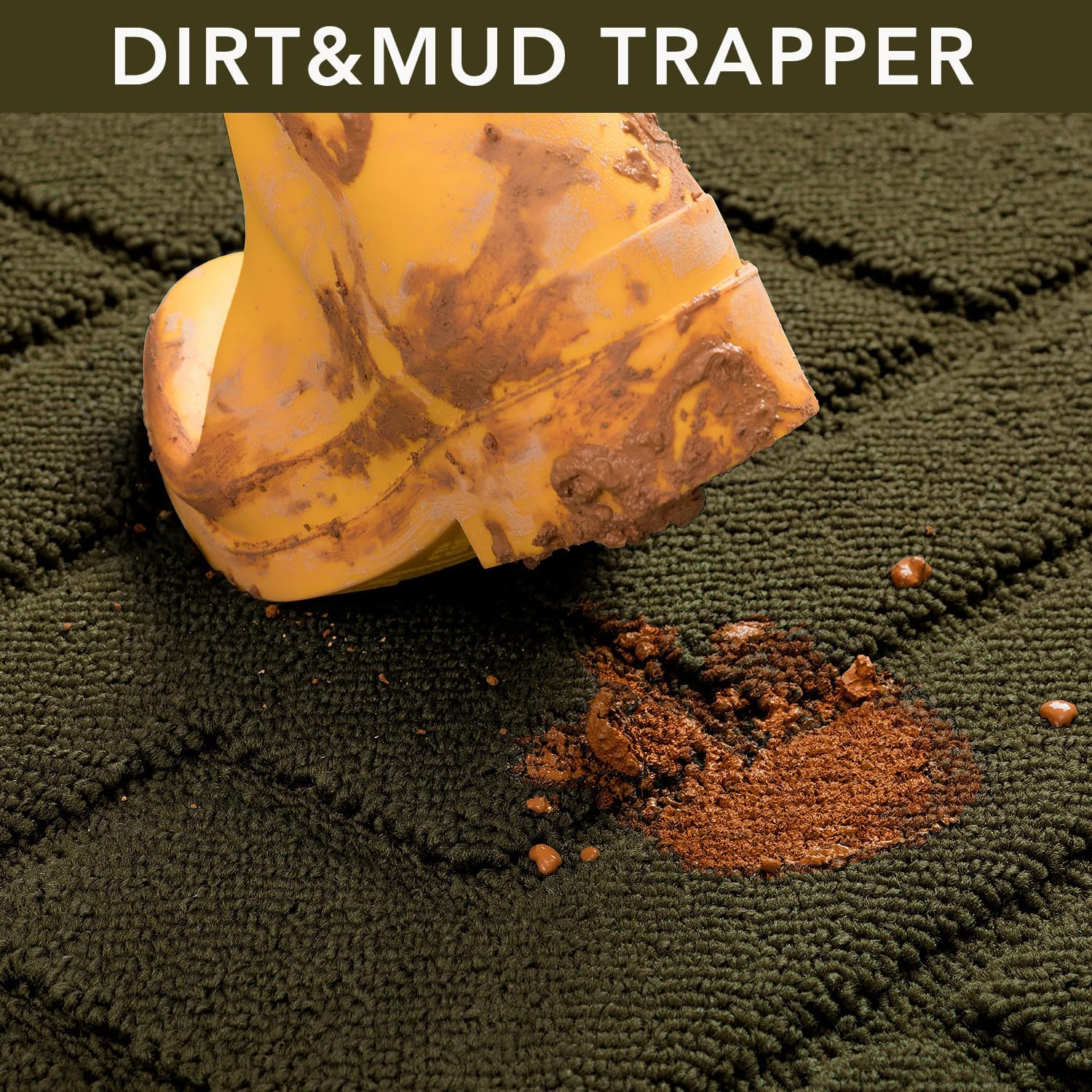 hicorfe Front Door Mat Outside Entrance,20"x31.5" Absorbent Muddy Dirt Resist Welcome Door Mats Outdoor Indoor,Stain and Fade Resistant,Non Slip Backing Entry Mat Doormat for Entryway(Oliver Green)