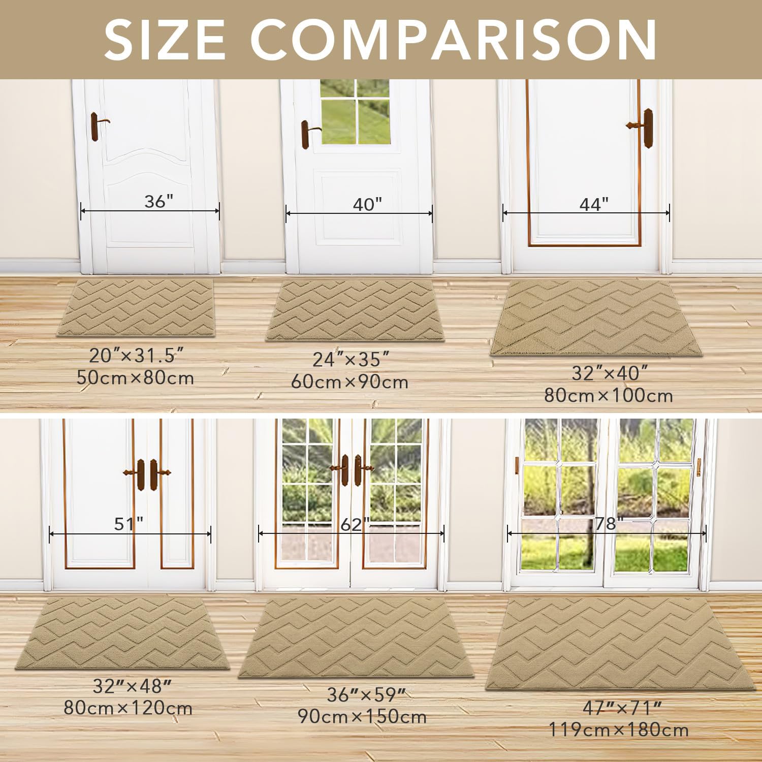 hicorfe Front Door Mat Outside Entrance,32"x40" Absorbent Muddy Dirt Resist Welcome Door Mats Outdoor Indoor,Stain and Fade Resistant,Non Slip Backing Entry Mat Doormat for Entryway(Beige)