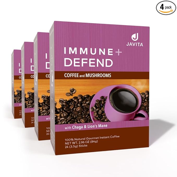 Mushroom Coffee by Javita, Immune & Defend Blend of Chaga, Lion's Mane and Dark Roast Coffee for Morning Boost, Antioxidant Support; Keto-friendly, 4 boxes of 24 (3.5g) Sticks, 96 ct