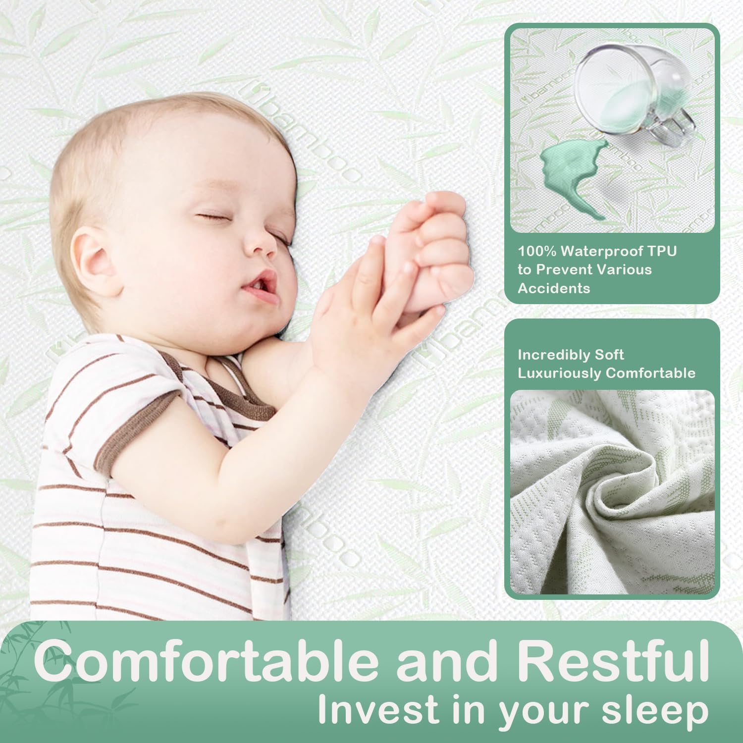 - 【Waterproof Mattress Protector】(39” x 75” Twin Size) Experience the ultimate in protection and comfort with our waterproof mattress protector featuring an upgraded TPU waterproof layer. Enjoy exceptional waterproofing without sacrificing breathability, ensuring your mattress remains free from all liquid mishaps and stains. Defend against spills, stains