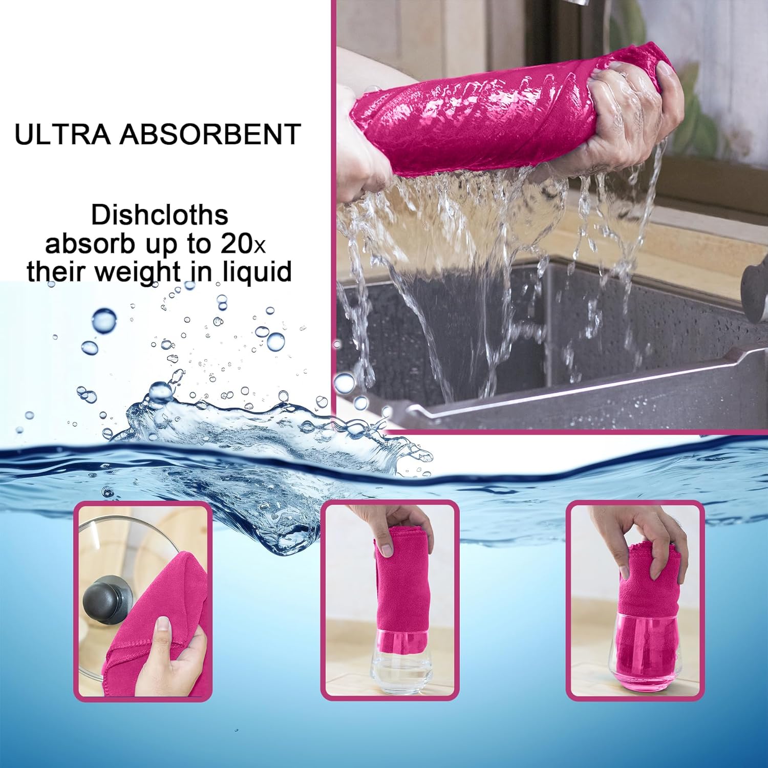 - COUNTLESS USES - Due to being highly absorbent, these microfiber dish towels are great for dust cloths, drying hands, wiping stains, cleaning windows, as well as cheese strainers, salad spinners, a wide variety of household chores. As good as having a magic wand in your hands! Get the job done quickly in a right way with our dish cloths!