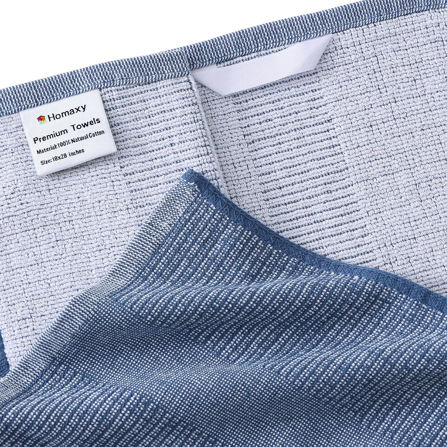 Homaxy Premium Kitchen Towels(18”x 28”, 6 Pack), Large Cotton Kitchen Hand Towels, Flat and Terry Dish Towels, 380 GSM Highly Absorbent Tea Towel Set with Hanging Loop, Navy Blue