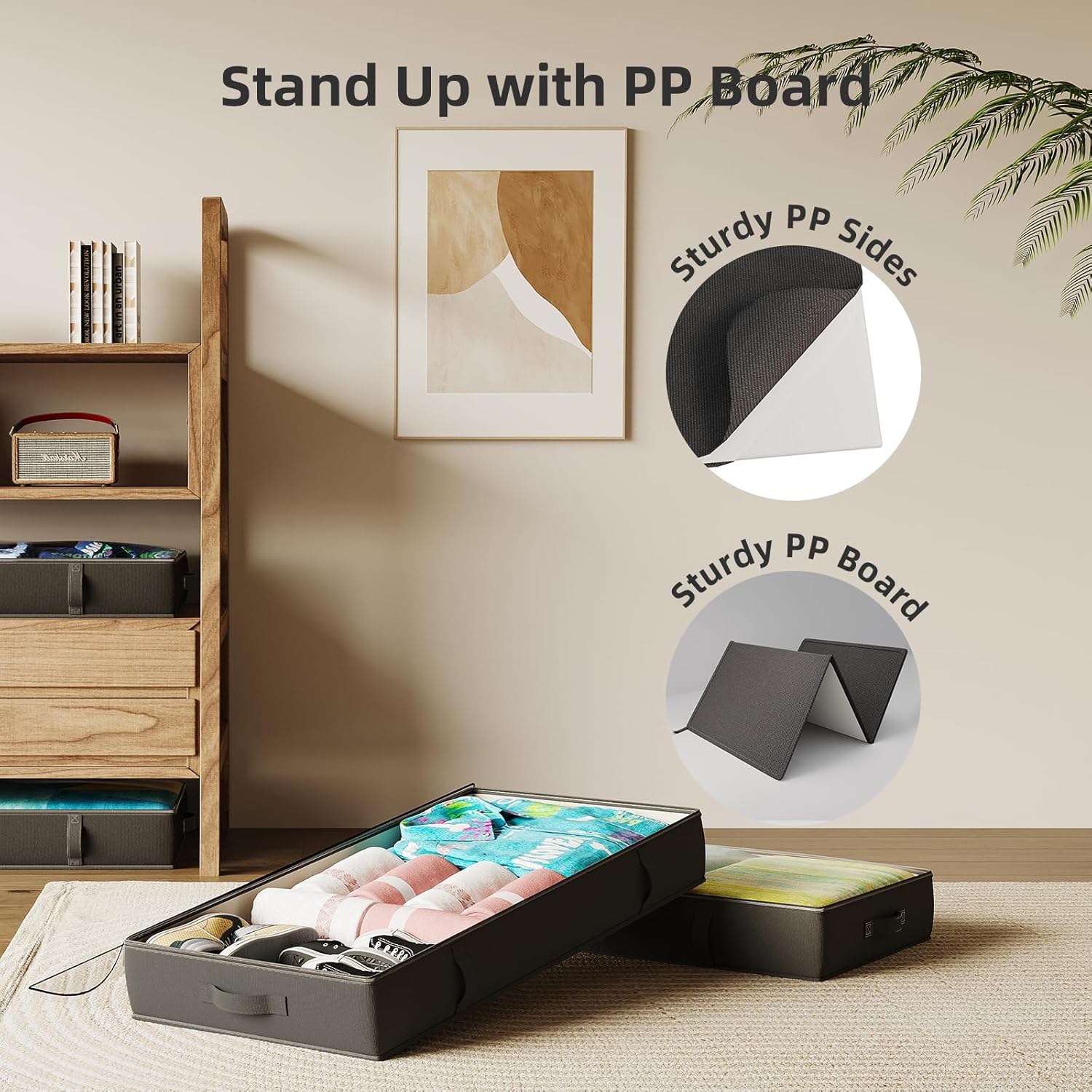 - Your room can be more organized - thanks to our STURDY underbed storage bins, you can place it under the bed, in the closet, on top of the closet, even under the sofa, or any other small spaces in your home. You'll find it so helpful that your home will seem bigger!
