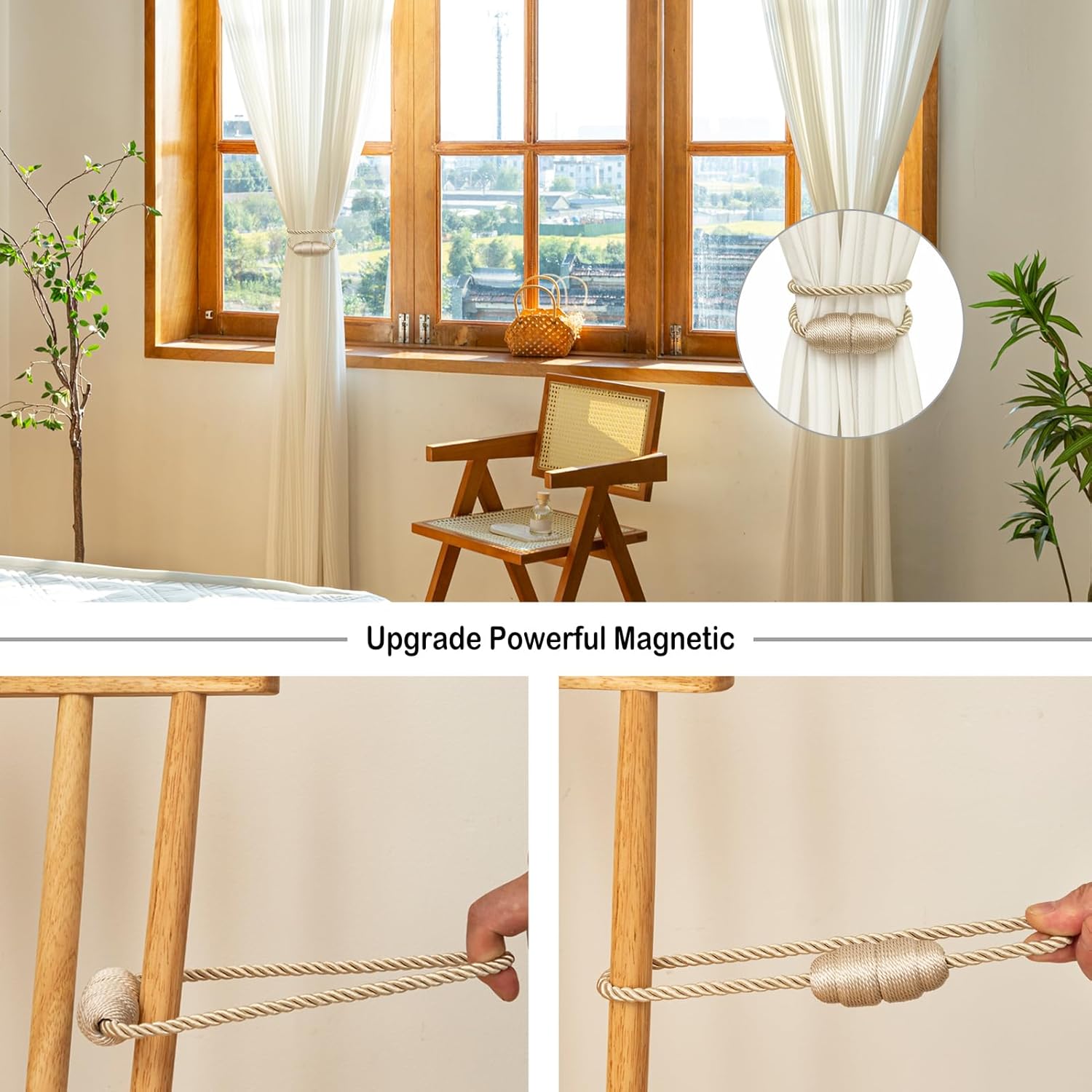 Magnetic Curtain Tiebacks Rope Curtain Tie Backs for Curtains 8 Pack Curtain Holders for Drapes Decorative Window Curtain Holdbacks, Beige