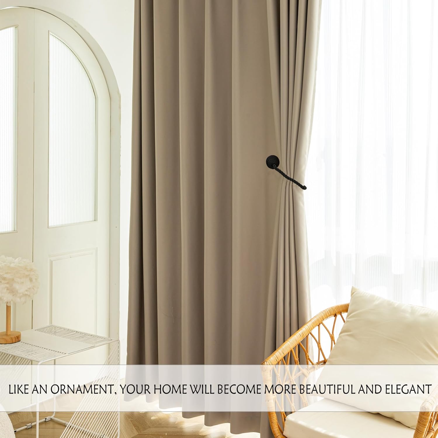 - Fixing & Protect curtains: Curtain straps can fix the curtains in the desired position to prevent them from swinging or sliding in the wind. It can effectively keep the curtains tidy and symmetrical, The curtain tiebacks can carry part of the weight of the curtain, reducing the burden on the curtain itself and avoiding damage caused by long-term friction and pulling.