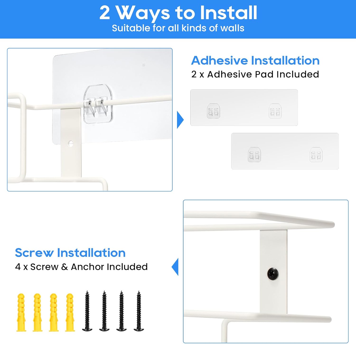 - 【Two Installation Methods】Comes with all mounting hardware, the glove rack can be mounted on the wall or cabinet door by adhesive hooks or screws, allowing you to choose the installation method according to the wall.