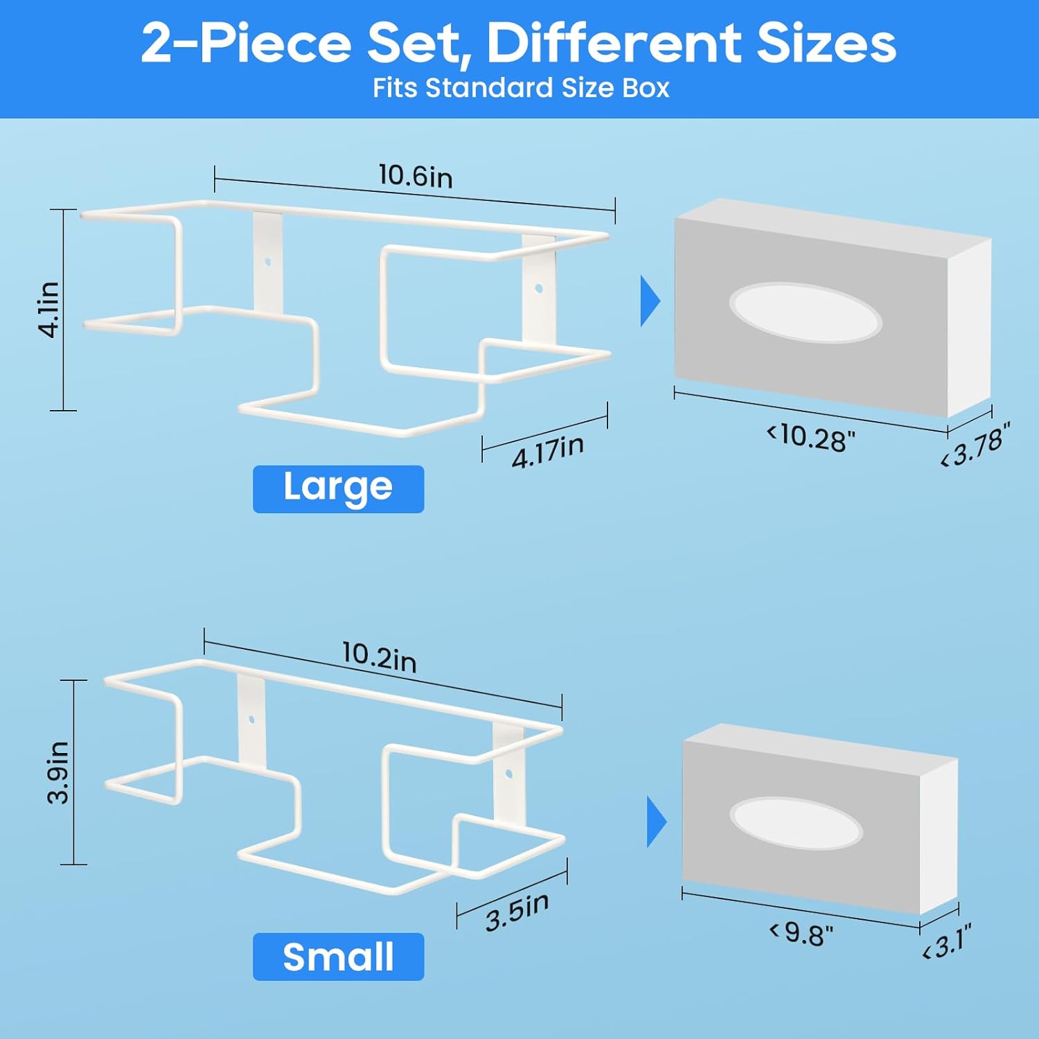 THYGIFTREE Glove Box Holder Wall Mount Dispenser, 2 Pack Metal Rack for Rubber Latex Disposable Gloves Facial Tissue, White