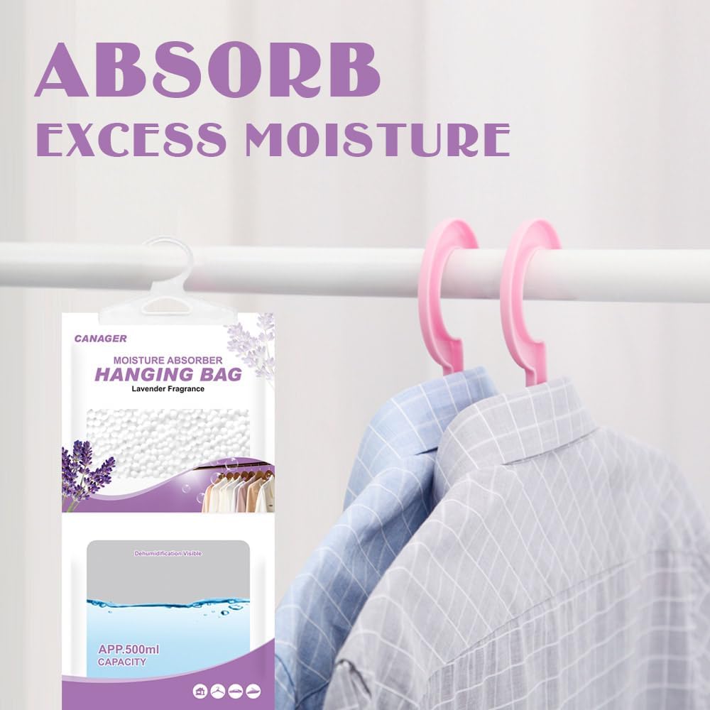 CANAGER Hanging Moisture Absorber, Lavender Vanilla Moistureproof Hanging Bag, Dehumidifier Bag (8 packs) Hanging Closet Dehumidifier Bags, Moisture Absorb 12.5 oz.