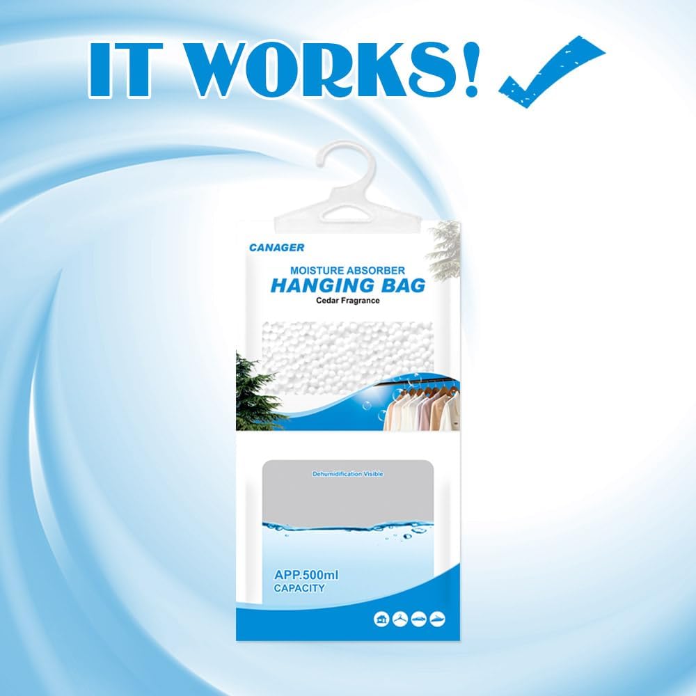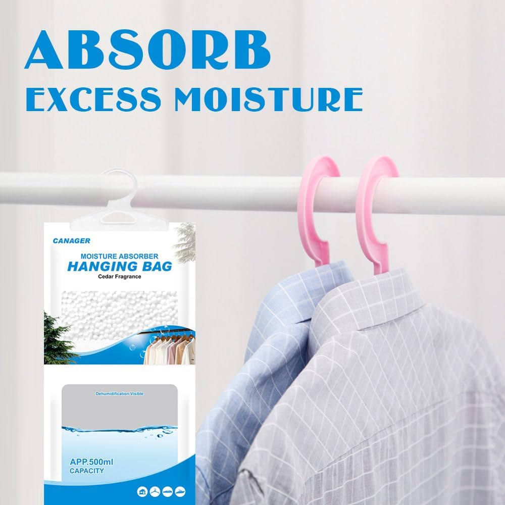 CANAGER Hanging Moisture Absorber,Cedar Fragrance Moistureproof Hanging Bag, Dehumidifier Bag (8 packs) Hanging Closet Dehumidifier Bags, Moisture Absorb 12.5 oz.