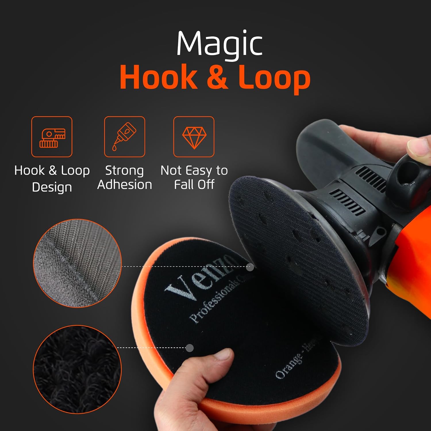 - 🌟【Versatile Compatibility and Easy Handling】: Suitable for a range of electric buffer polishers, including Dual Action Polishers, Rotary Polishers, Air Polishers, Drill Machines and Random Orbital Sanders. High-quality flocking ensures easy pad replacement, improved work efficiency, and superior air permeability, preventing heat-related adhesion issues.