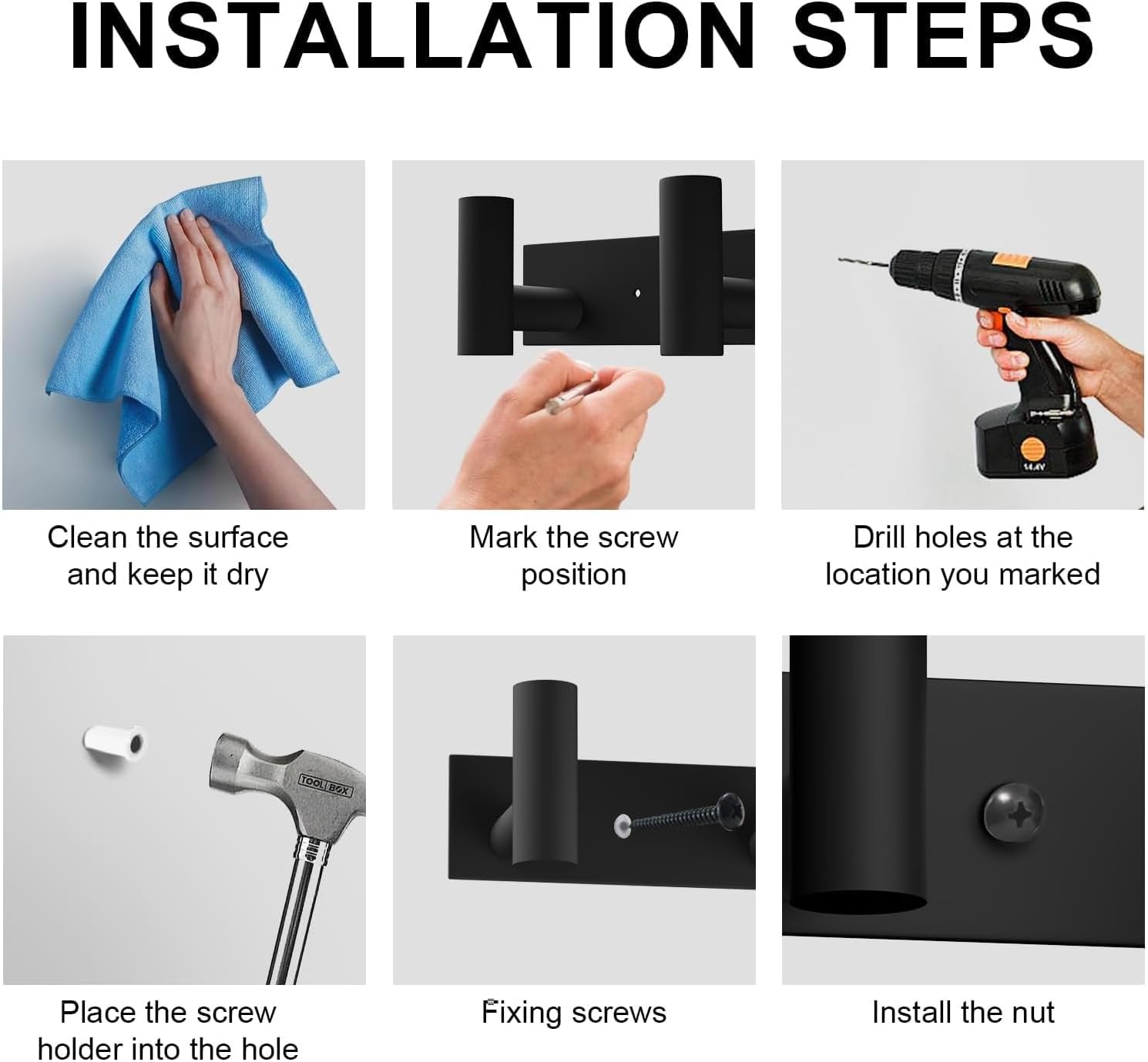 - Easy to install: Wall mounted hangers are easy to install on walls or wooden doors;. The installation hardware includes screws, plastic expansion anchors, and washers