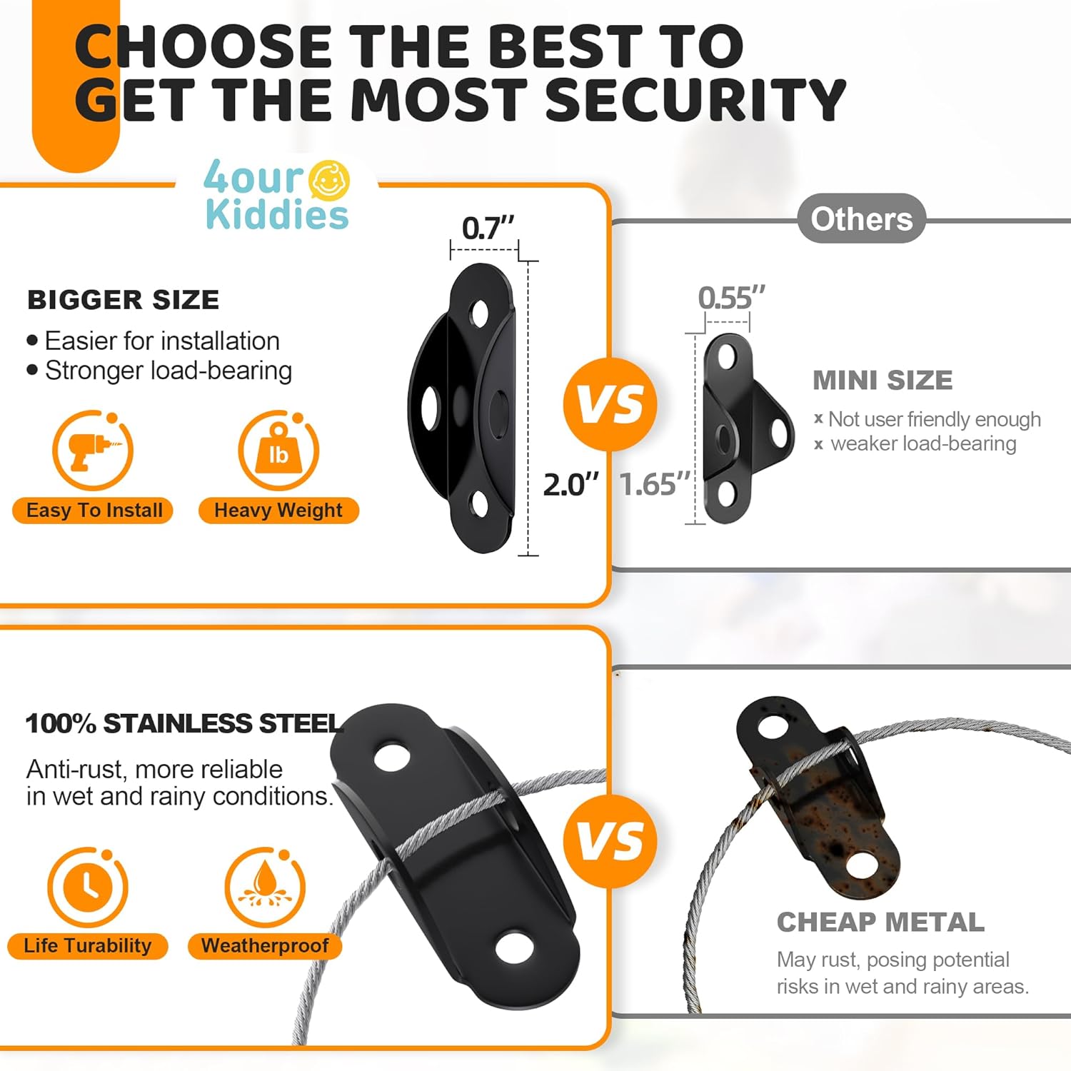 - PREMIUM STAILESS STEEL STRAPS - These furniture straps are made of high-quality stainless steel material, a high resistance to corrosion means that it will never rust during whole life use. And it has a resistance to fire and heat. What’s more, the straps are more sturdy and durable than other plastic straps, which will provide a perfect effect on baby safety.