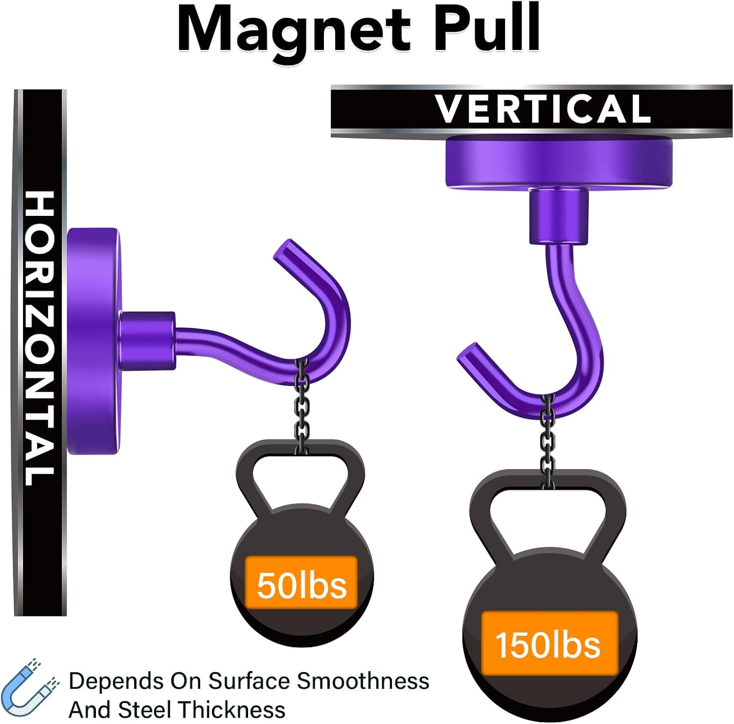 MIKEDE Magnetic Hooks,150LB Heavy Duty Magnets with Hook for Fridge, Strong Magnet Neodymium Industrial Hooks Hanging, Hanger Toolbox, Cruise(Purple, 10 Pack)