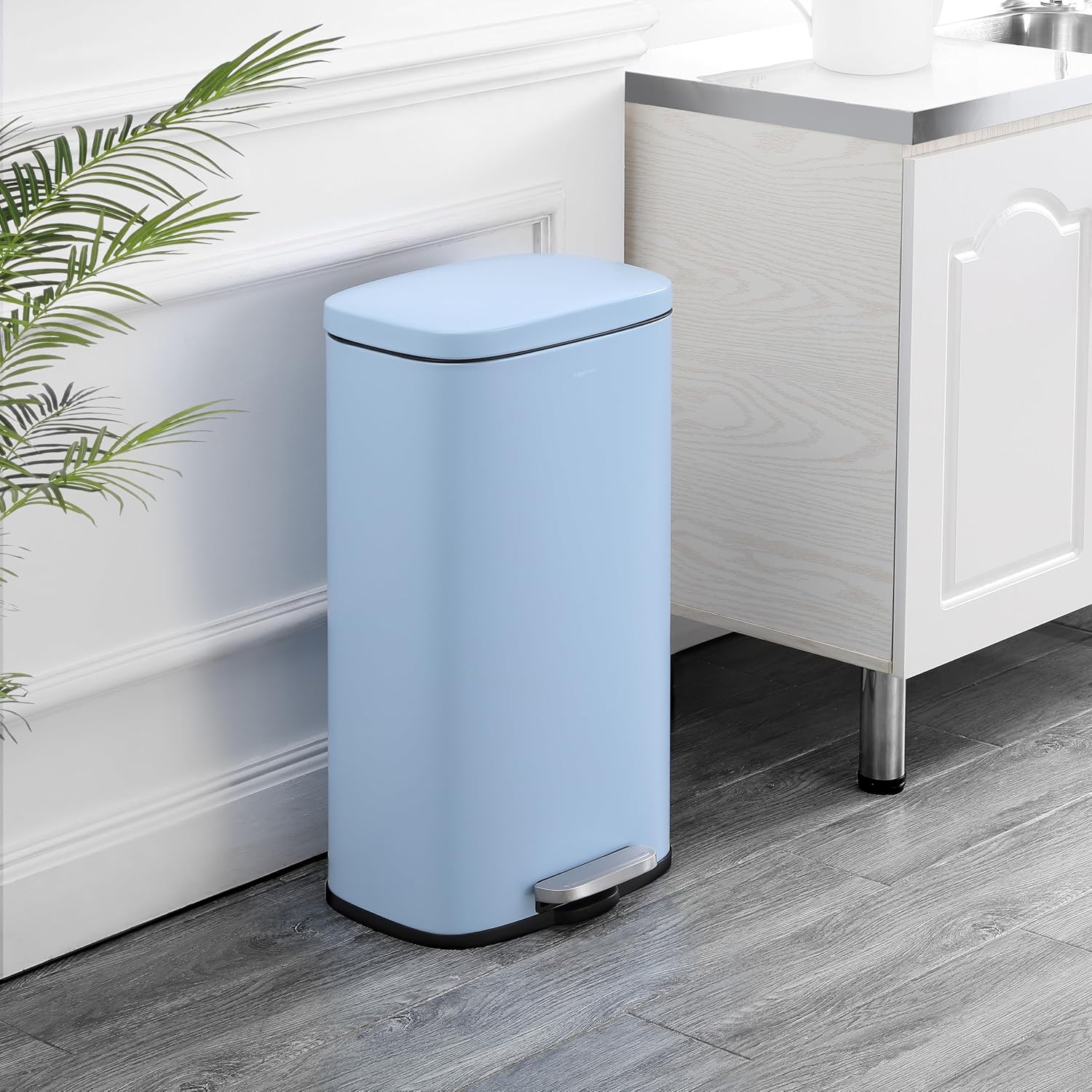 happimess HPM1011G Curtis 8-Gallon Step-Open Trash Can, Fingerprint Resistant, Modern, Minimalistic for Home, Kitchen, Laundry Room, Office, Bedroom, Bathroom, Tide Pool Blue