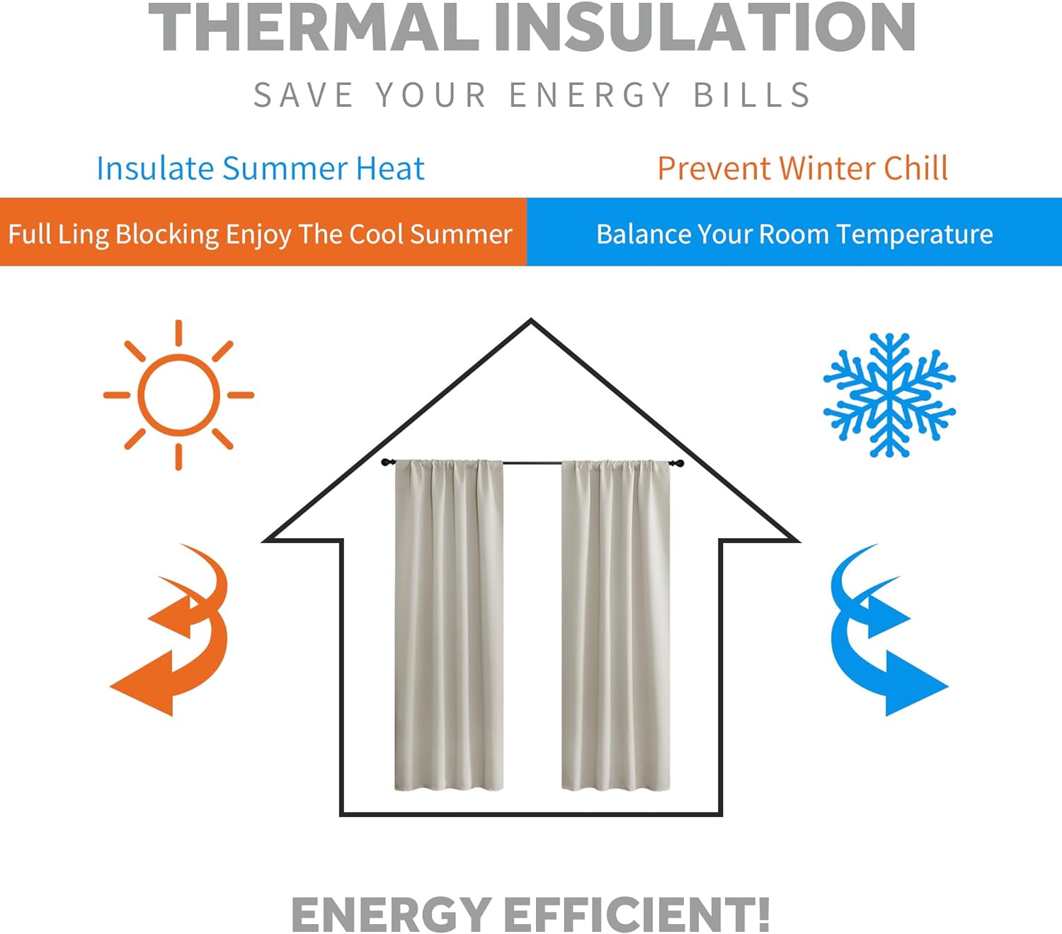- LIGHT BLOCKING - Curtains block 85-95% sunlight and UV rays (Dark color works better) for maximum privacy and undisturbed sleep. Thermal property of the blackout curtains ensure that the room temperature is regulated. Protect your indoor furniture from directly exposing to the sun.