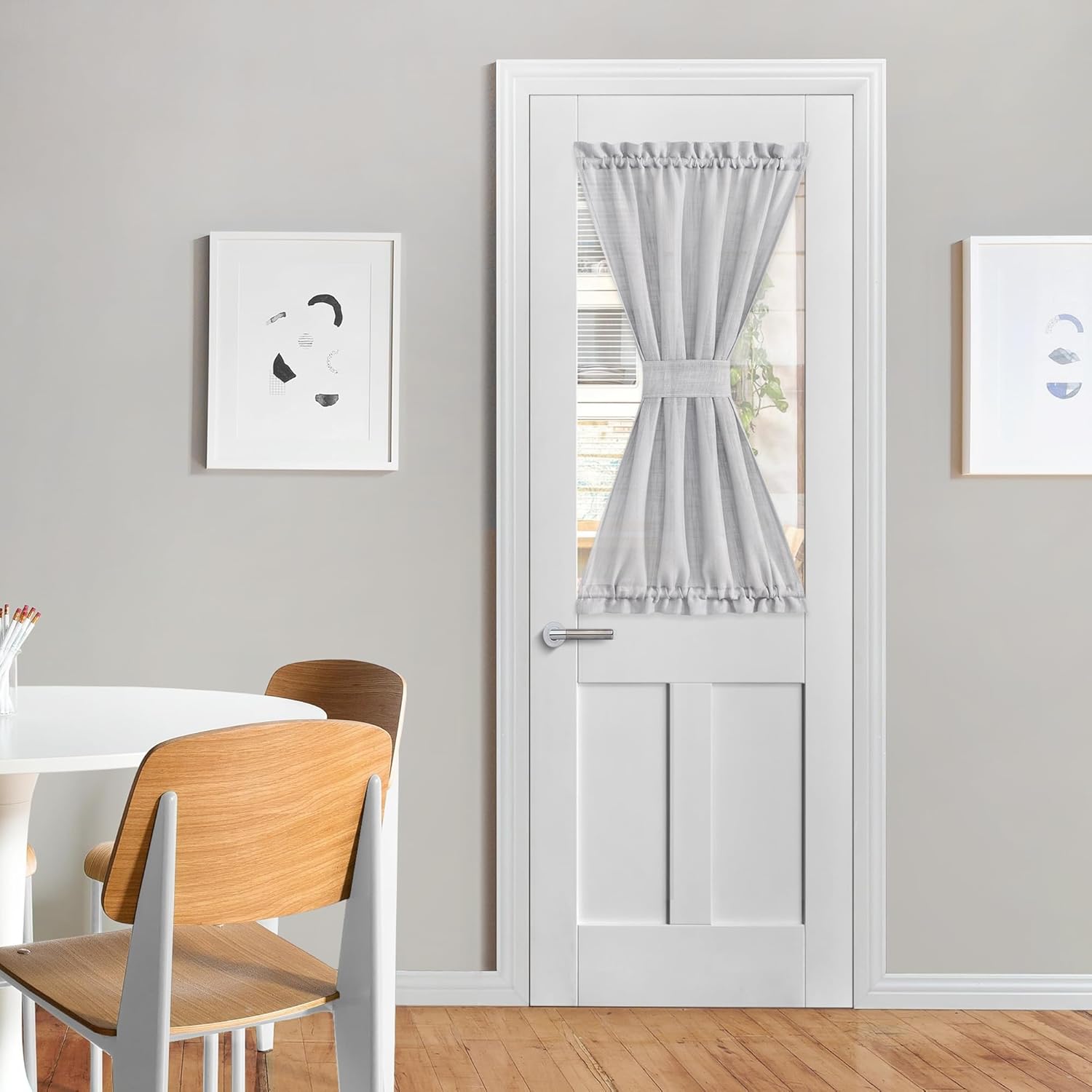 - Ready-Made: The package includes 1 panel of 26"W x 40"L semi-sheer ture linen door curtain with a tie-back. These pretty linen sheer door panels feature top and bottom rod pockets for easy installation. It is ideal for a door window that brings French elegance to your room.