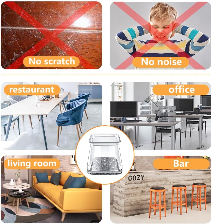 - 【The felt pad will not fall off】The package includes 32 pieces. Our upgraded Square silicone chair leg cover is equipped with a felt pad. We combine the felt and silicone into an integral part.