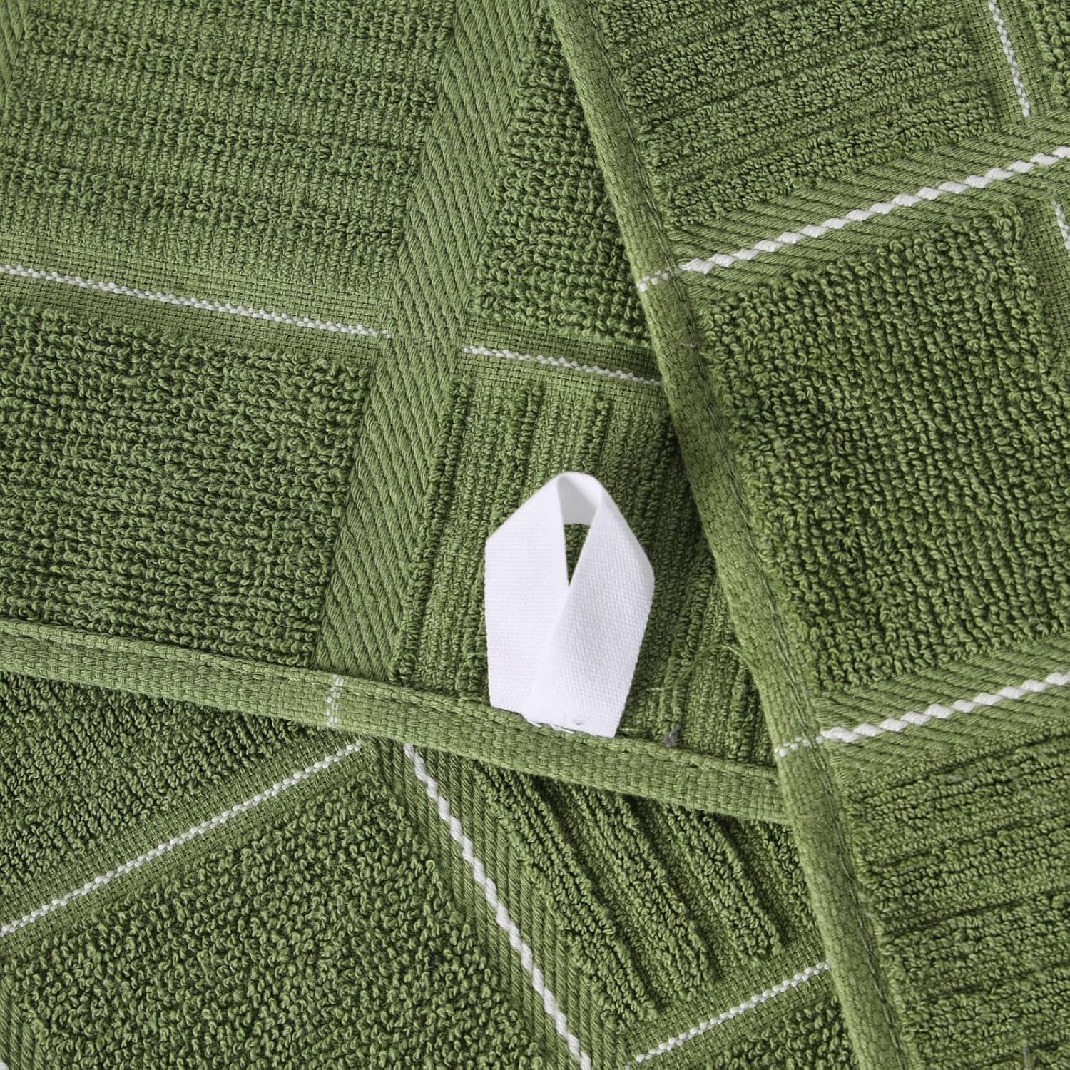 - With hanging loop for easy storage. On the kitchen towels set there is a hanging loop on the middle, you can easily put it on the hook and other places that is convenient for you