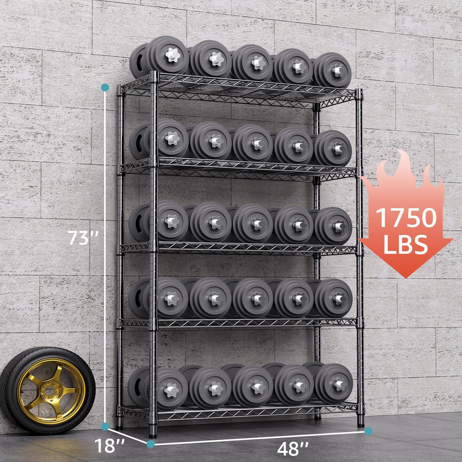 1750 lbs Steel Storage Shelving 5-Tier Utility Shelving Unit Steel Organizer Wire Rack for Home,Kitchen,Office,Garage, 1750 LBS Capacity 17.7" D x 47.2" W x 72.3" H