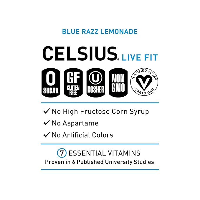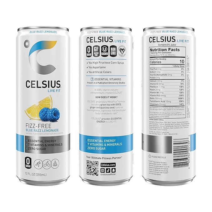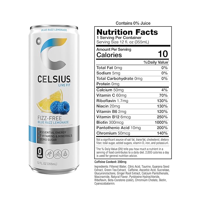 CELSIUS Fizz Free Blue Razz Lemonade, Sugar Free Energy Drink, 12 Fl Oz (Pack of 12)