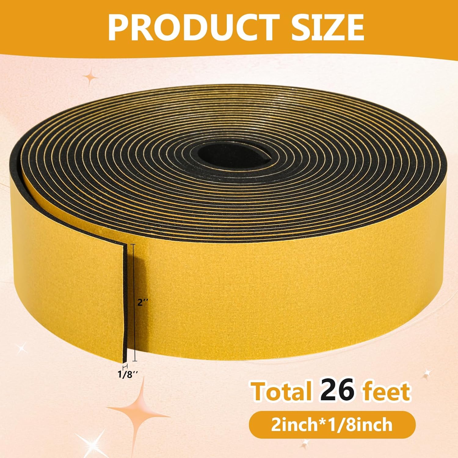 26Feet Weather Stripping Seal (2 Inch X 1/8 Inch) for Door Window, High Density Foam Tape, Soundproofing, Insulation Strip, Door Sealers for Door Frame- Black