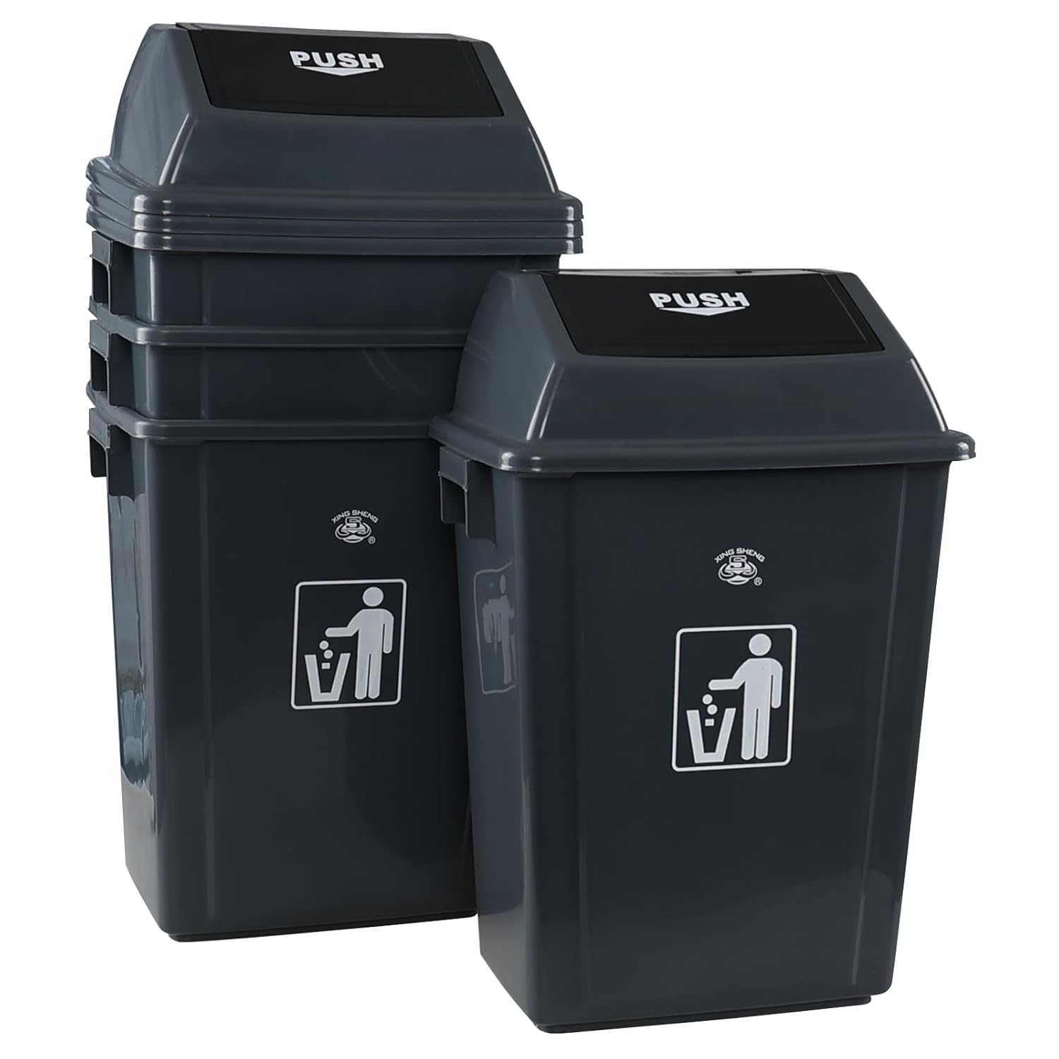 18 Gallon Tall Plastic Trash Can with Swing Lid, 4 Pack Gray Large Kitchen Garbage Bins