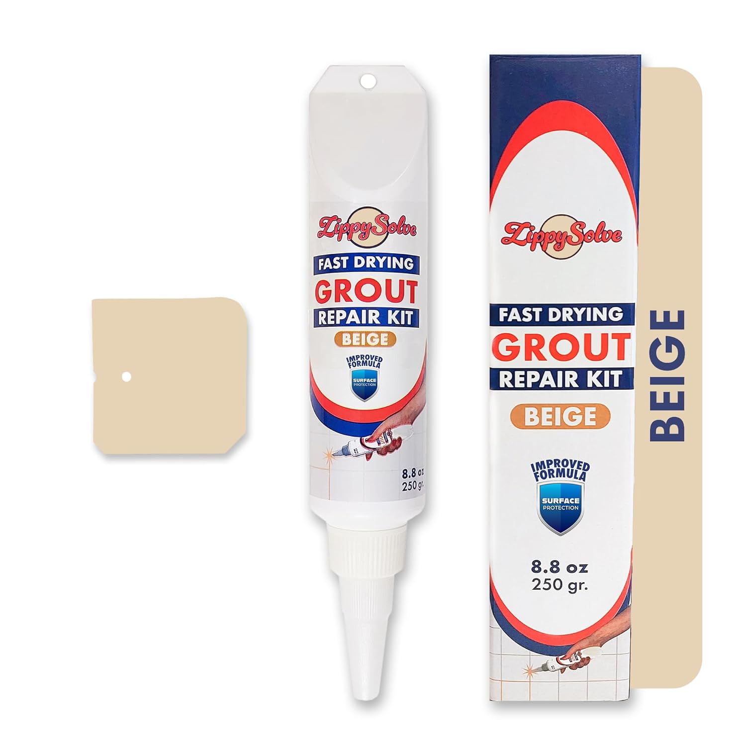 - All-in-One Kit: ZippySolve's grout repair kit simplifies home improvement projects. It includes a tube of grout repair solution and a dual-purpose spatula for correction and cleaning.The spatula has four uniquely designed corners for versatile grout application, enabling precise and efficient spreading in various spaces.This streamlined kit ensures a professional finish with minimal equipment.