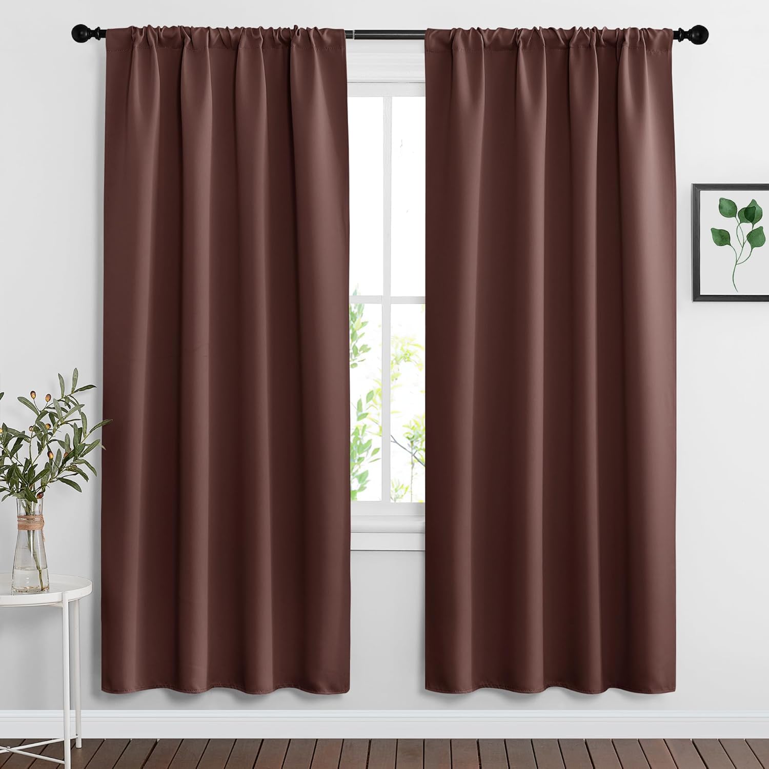 RYB HOME Rod Pocket Blackout Curtains for Bedroom Kitchen Living Room Office Light Block Energy Efficiency Glass Window Treatment Drapes, W 42 x L 63 inch, Chocolate Brown,2 Panels
