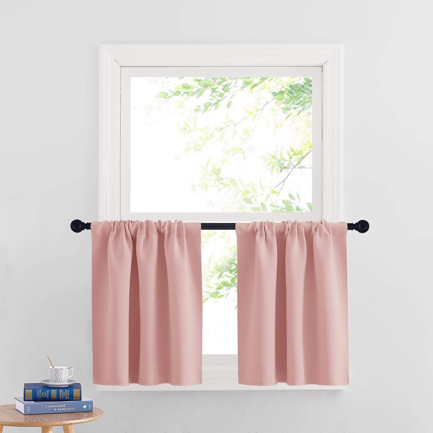 RYB HOME Small Curtains Blackout - Privacy Energy Efficiency Mini Curtains for Kids Bedroom RV Camper Windows Trailer Bathroom Kitchen Cabinet Window Tiers, W 29 x L 24, Peach Blush, 2 Panels