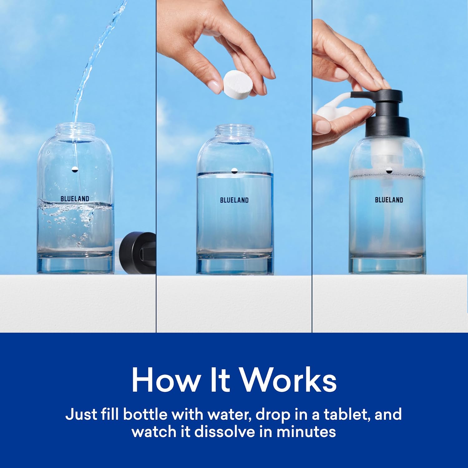 BLUELAND Foaming Hand Soap Refill Tablets, 10-Pack, Fragrance Free, Eco Friendly Cleaning Products, 10 x 9 Fl oz