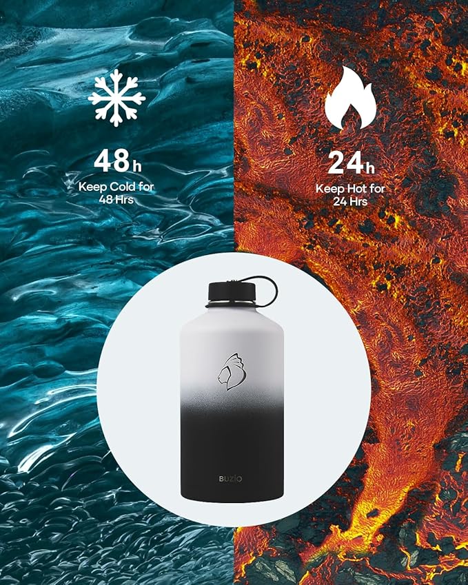 - Fresh Kept Longer: BUZIO stainless steel bottle features unique ThermoArmour technology that keeps beverage cold for up to 48 hours and hot 24 hours, making sure your every sip is refreshingly icy.