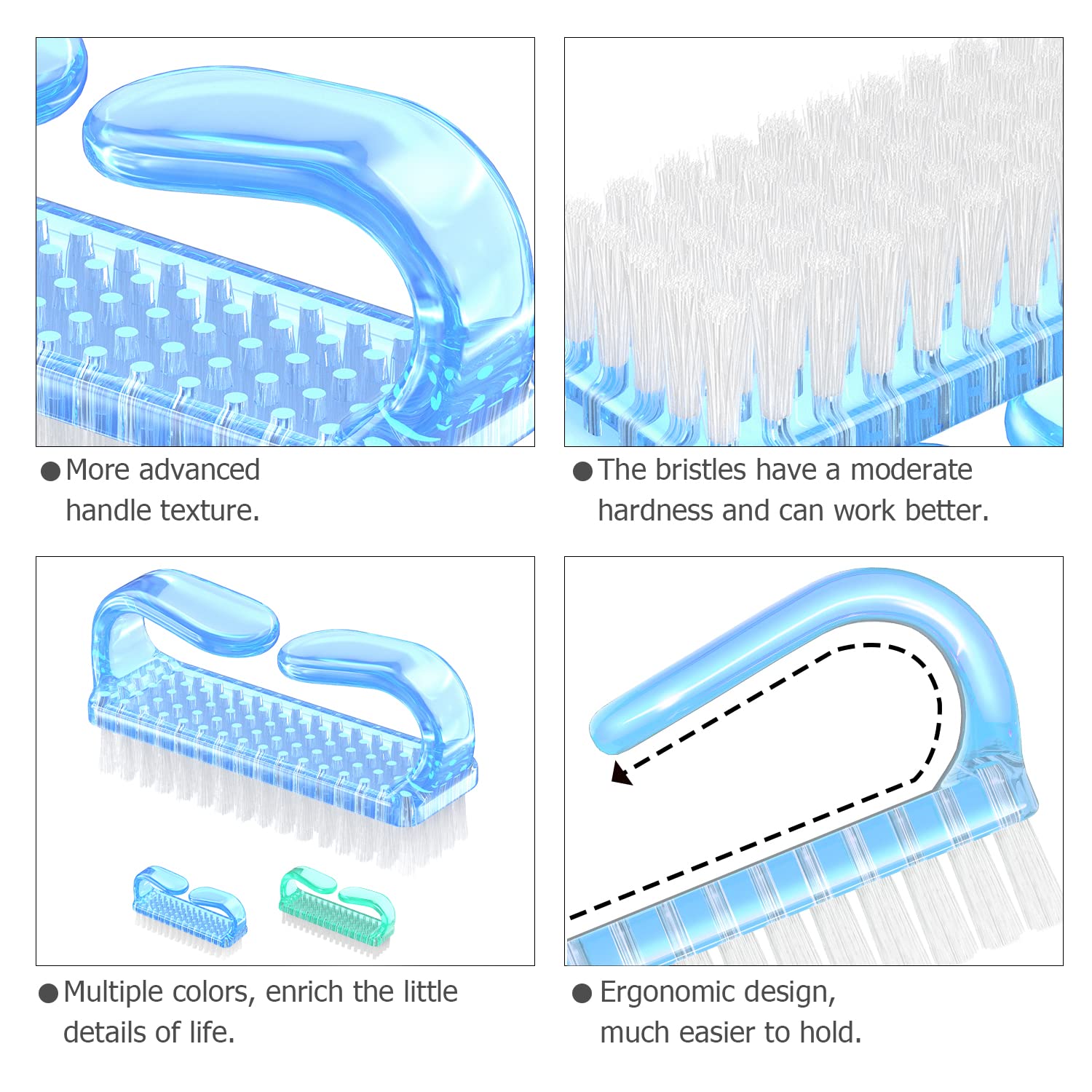- 【High Quality Material】: These nail brushes' handles are made of sturdy plastic which are not easy to bent. The bristles are made of flexible plastic, not too hard and not too soft which won't scratch your skin. Sturdy for long-term to use.