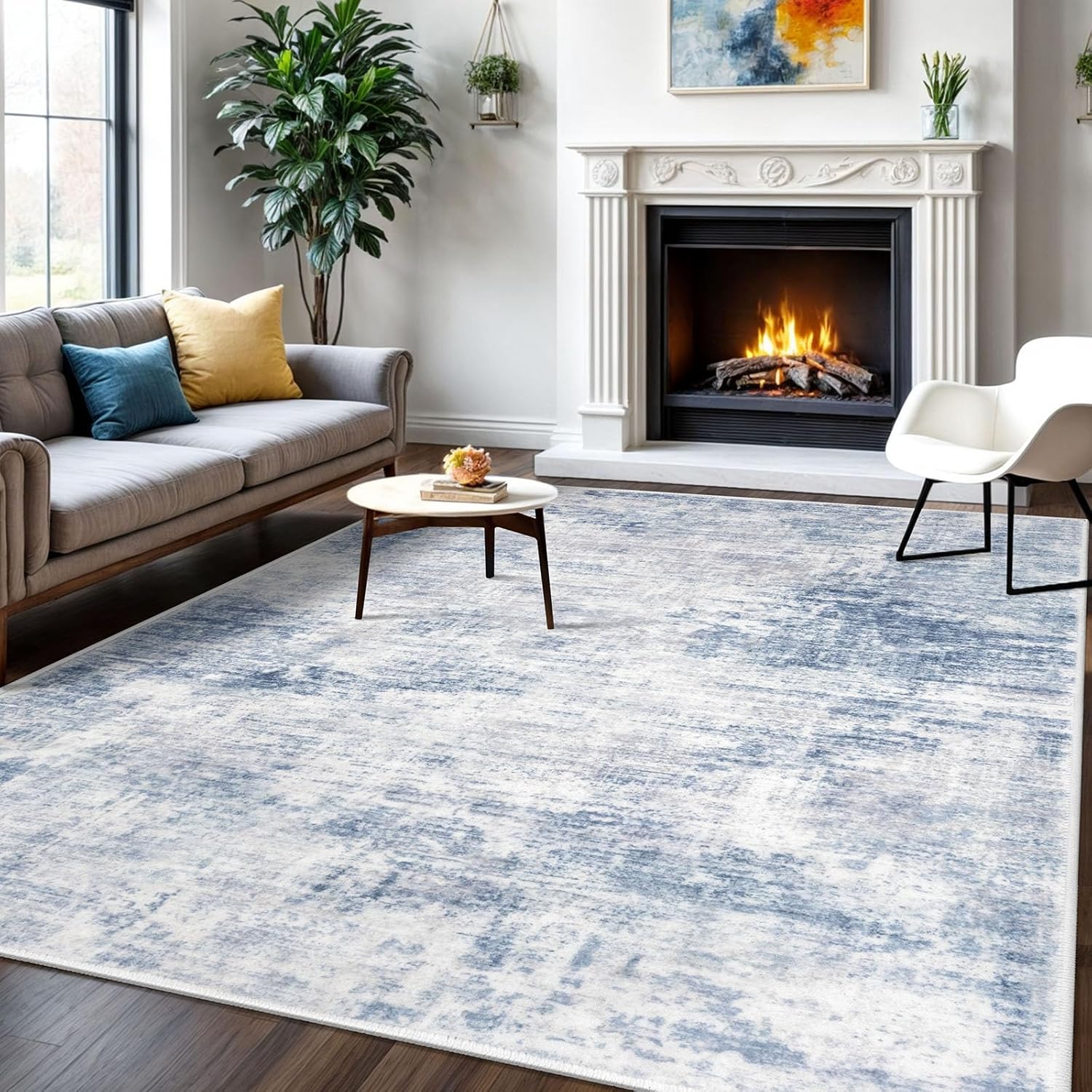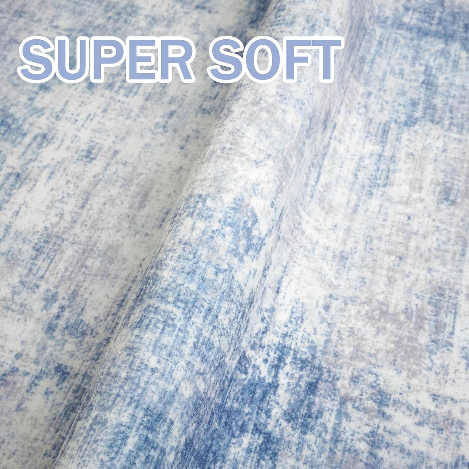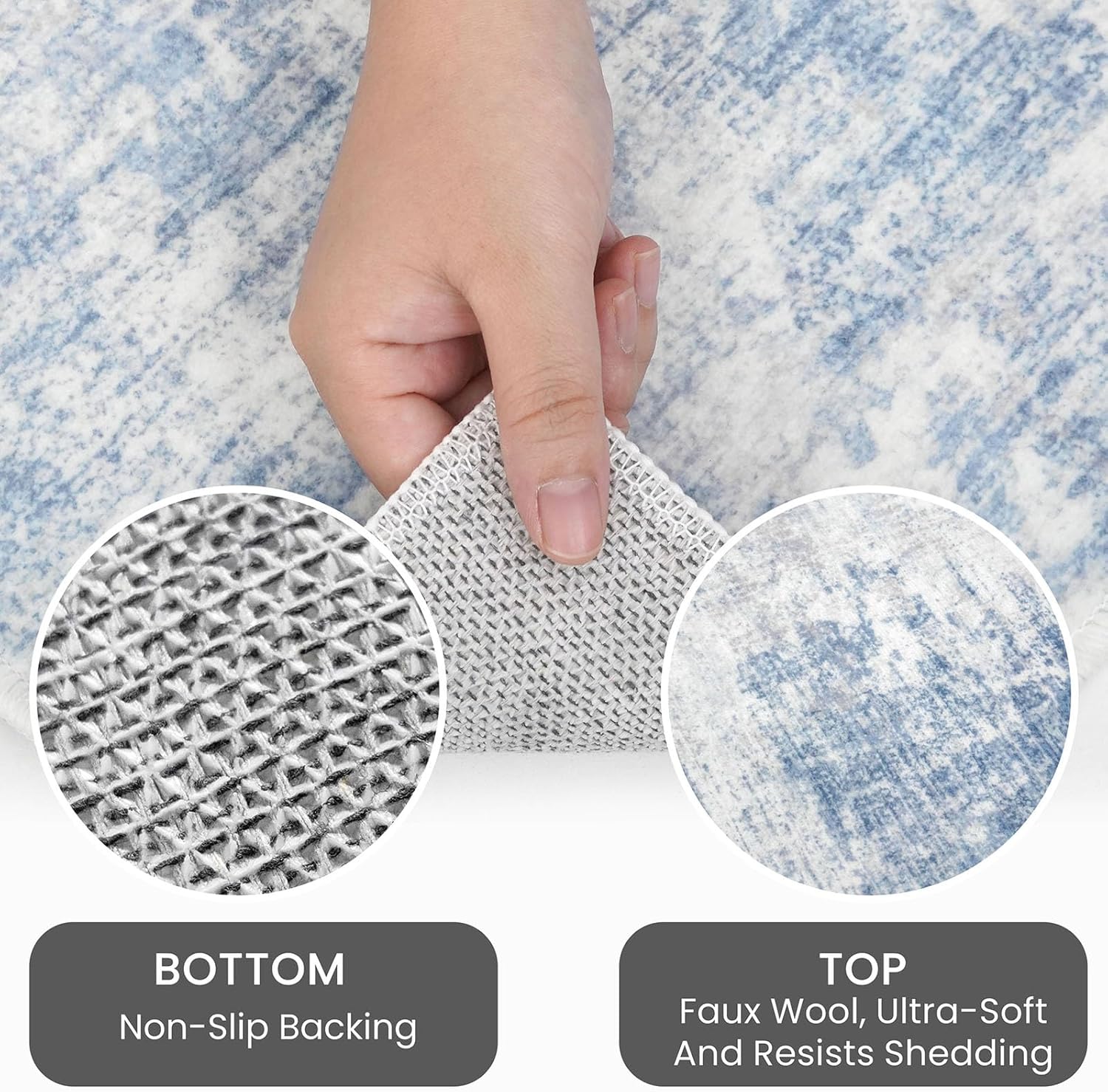IOHOUZE Abstract Area Rugs 6x9 Ft Washable Rugs for Living Room, Non Slip Dining Room Rug, Printed Faux Wool Rugs for Bedroom, Floor Carpet for Office Nursery Playroom, Light Blue White