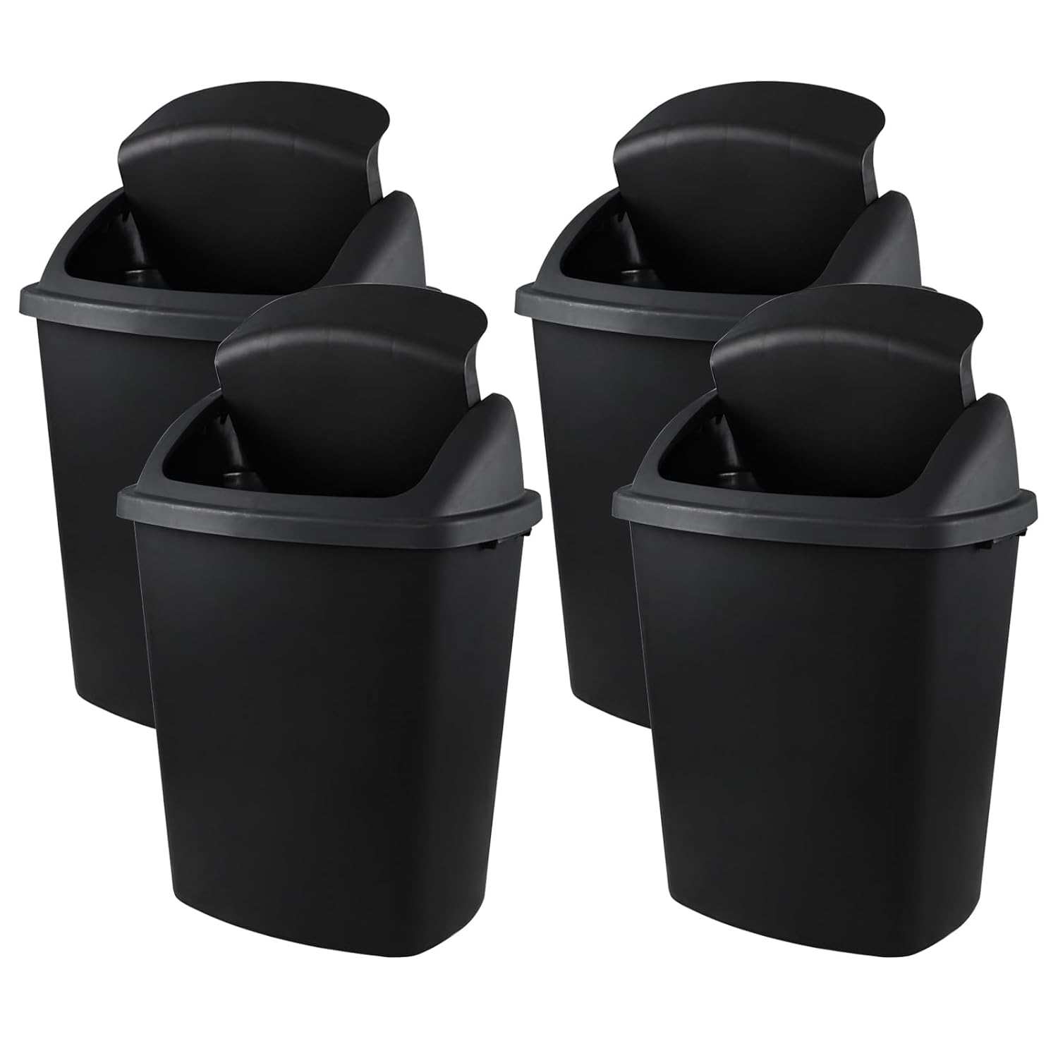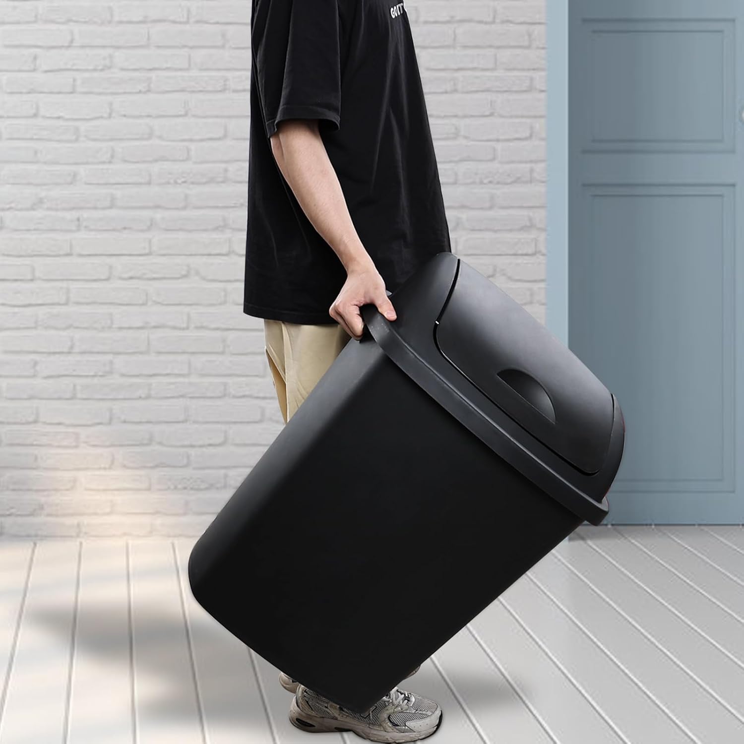 19 Gallon Kitchen Waste Bin, Large Plastic Trash Can, Black, Holds 70 Liters