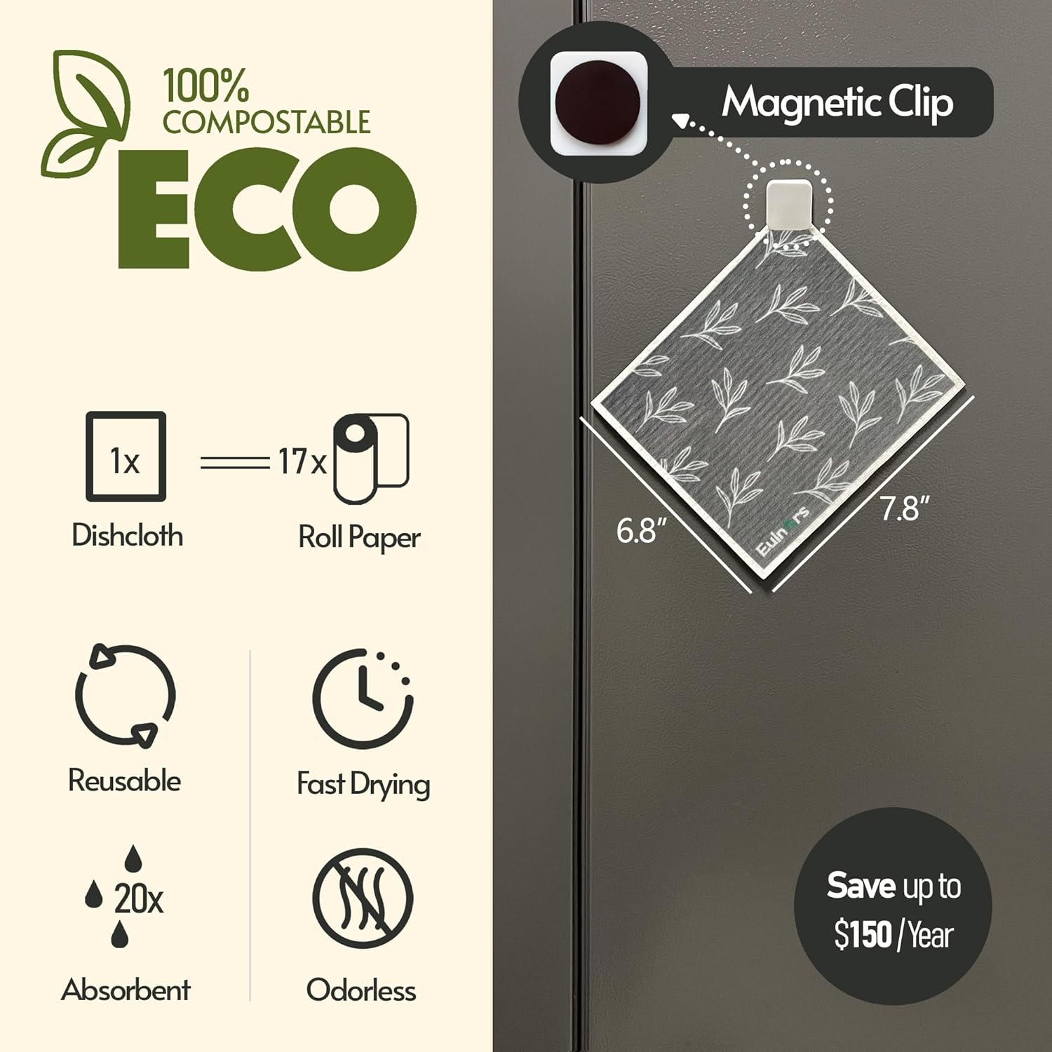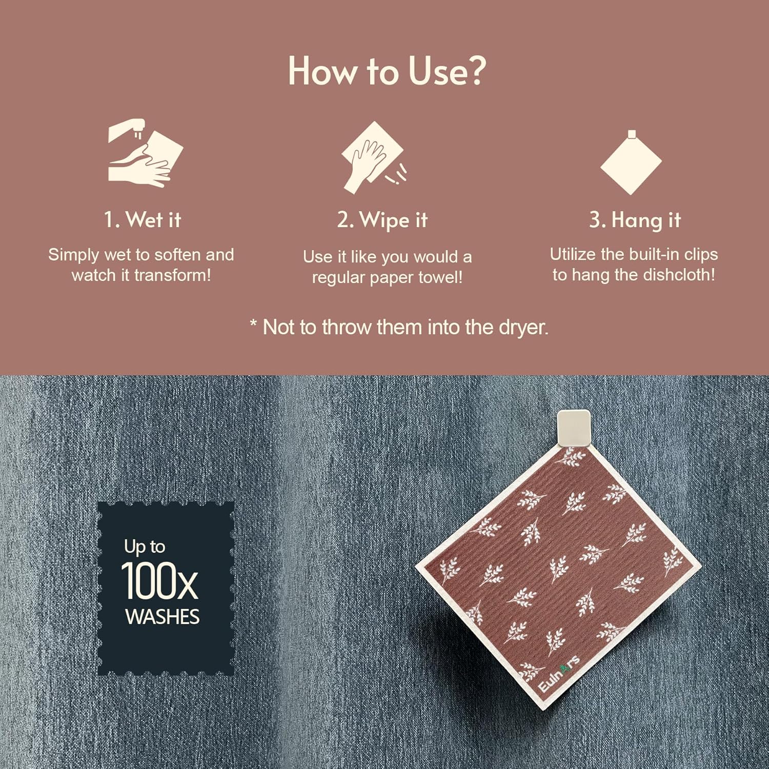 - Easy to Clean and Store: Our swedish dishcloths for kitchen, measuring 7.8 x 6.8 inches, each set comes with 8 cellulose dish cloths in 4 styles, along with 2 self-adhesive clips, 1 magnetic clip, and 9 labeling tags. Customize storage for easy access, hanging them on walls, counters, or refrigerators to keep your kitchen organized