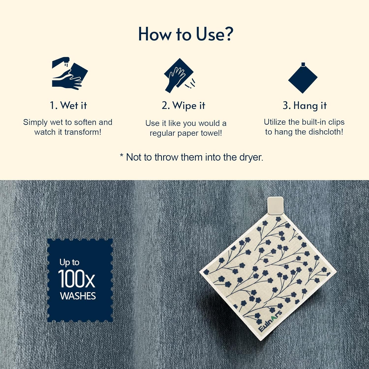 - Washable and Resuable: Tested to be reusable up to 200 times, our swedish dish rags for washing dishes can replace up to 17 rolls of paper towels. Affordable, durable, and easy to care for, they offer a long-lasting alternative to disposable paper towels