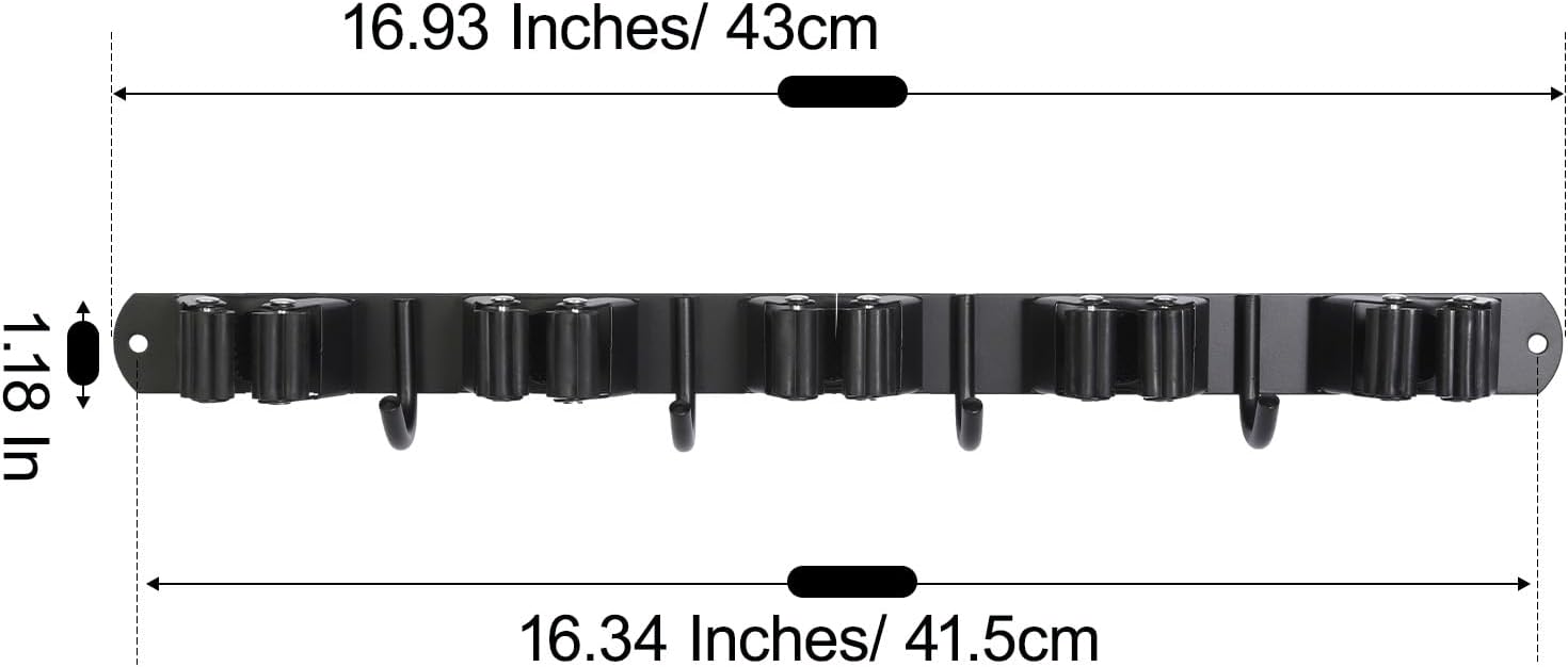 - [Easy To Use] The broom & mop storage organizer is easy to use, the grippers are flexible and can hold large and small handles, it can hold about 20 Ponds with self-adhesive ( or 50 Pounds if use screws) tools in total. Push the mop or comand broom handle into the clamps with easy after finish your household cleaning, or use the tool hangers for garage organizer wall mounted, essential garage storage & organization products of your house.