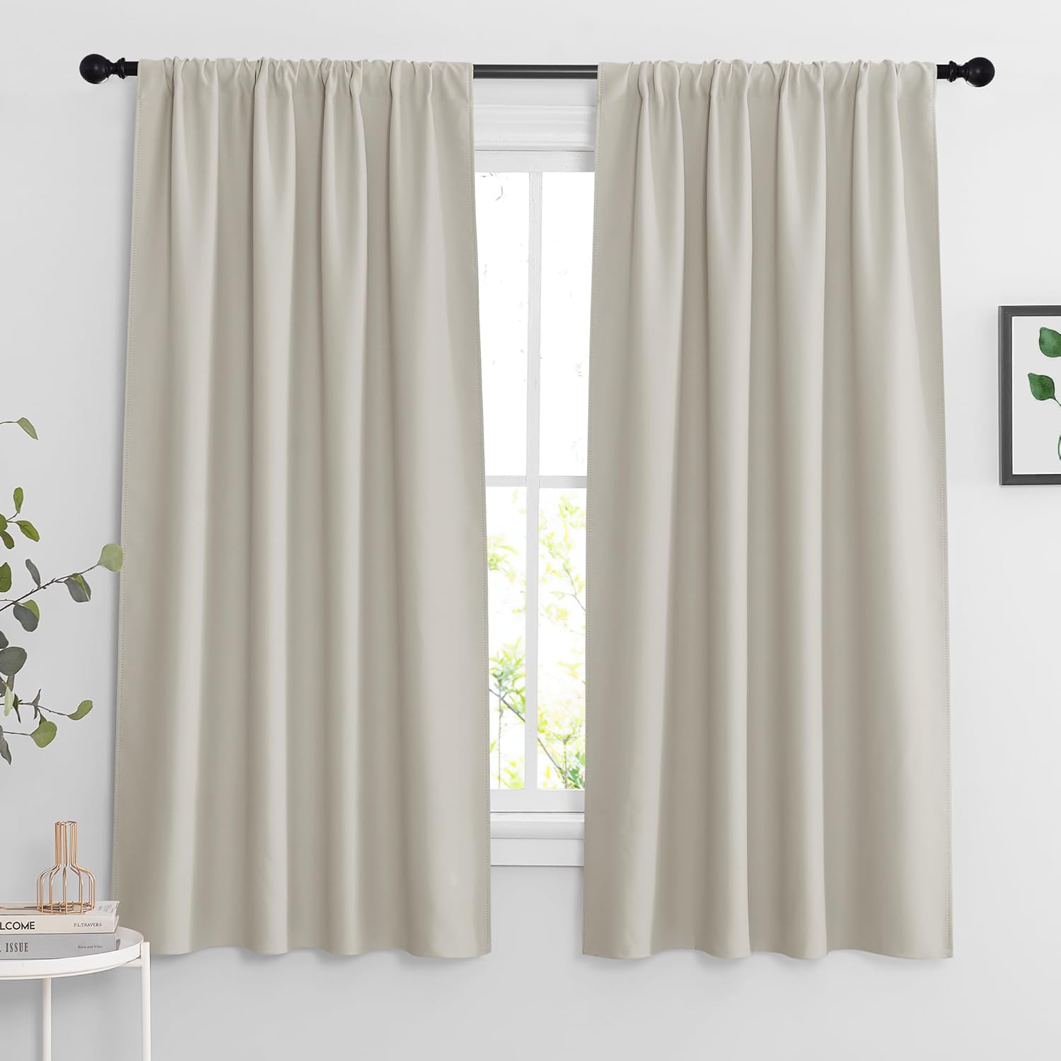RYB HOME Curtains for Bedroom 84 inches Long, Blackout Thermal Insulating Window Treatment Drapes for Living Room Bathroom Basement Laundry Classroom, W 42 x L 84, Beige, 2 Panels