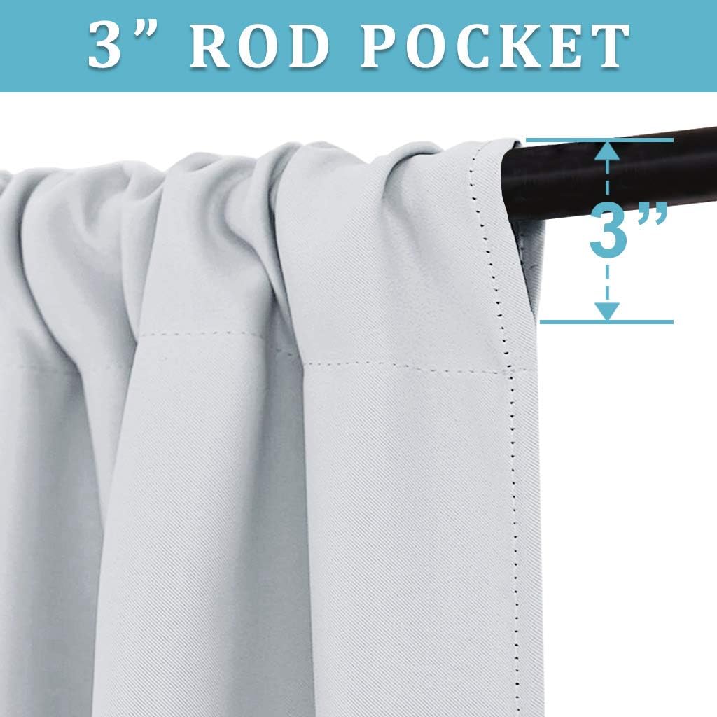 - WELL MADE - Sold as 2 panels. Each Panel measures 34" wide and total width is 68 inches. Curtains have 3" rod pocket top, which fits most of the rods. Both sides are the same color.