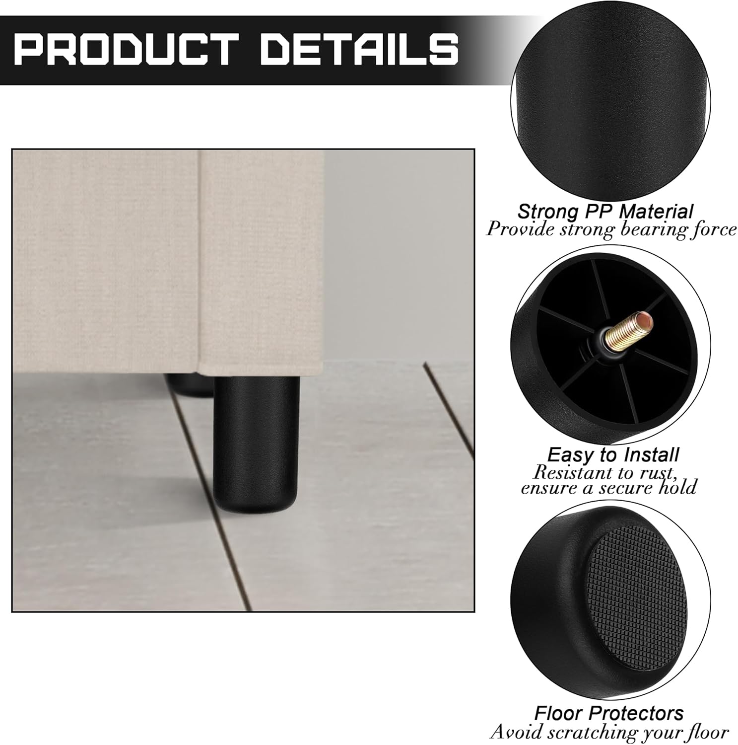 - Advantages: these replacement furniture legs with strong bearing force can help lift your furniture immediately, make you efficiently clean the place under furniture, and provide storage space for your furniture; all accessories are complete, so you can upgrade your furniture within seconds; each sofa leg is equipped with elastic rubber covers, providing additional protection and anti-slip function