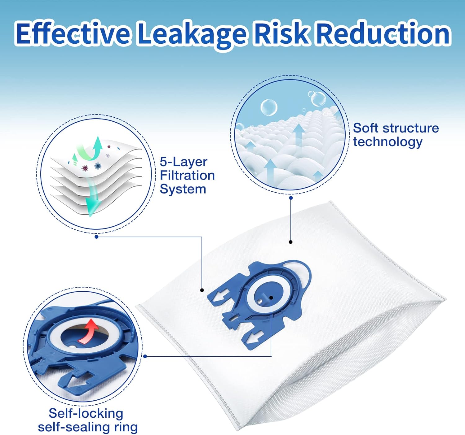 - Excellent Adsorption]- Designed with a variety of high-quality materials, the 5-layer filtration system can effectively adsorb dust and debris. The self-locking self-sealing ring will automatically close when the bag is removed, effectively reducing the risk of air leakage. Ensure that the particles inhaled by the vacuum bag are not easily released into the air again.