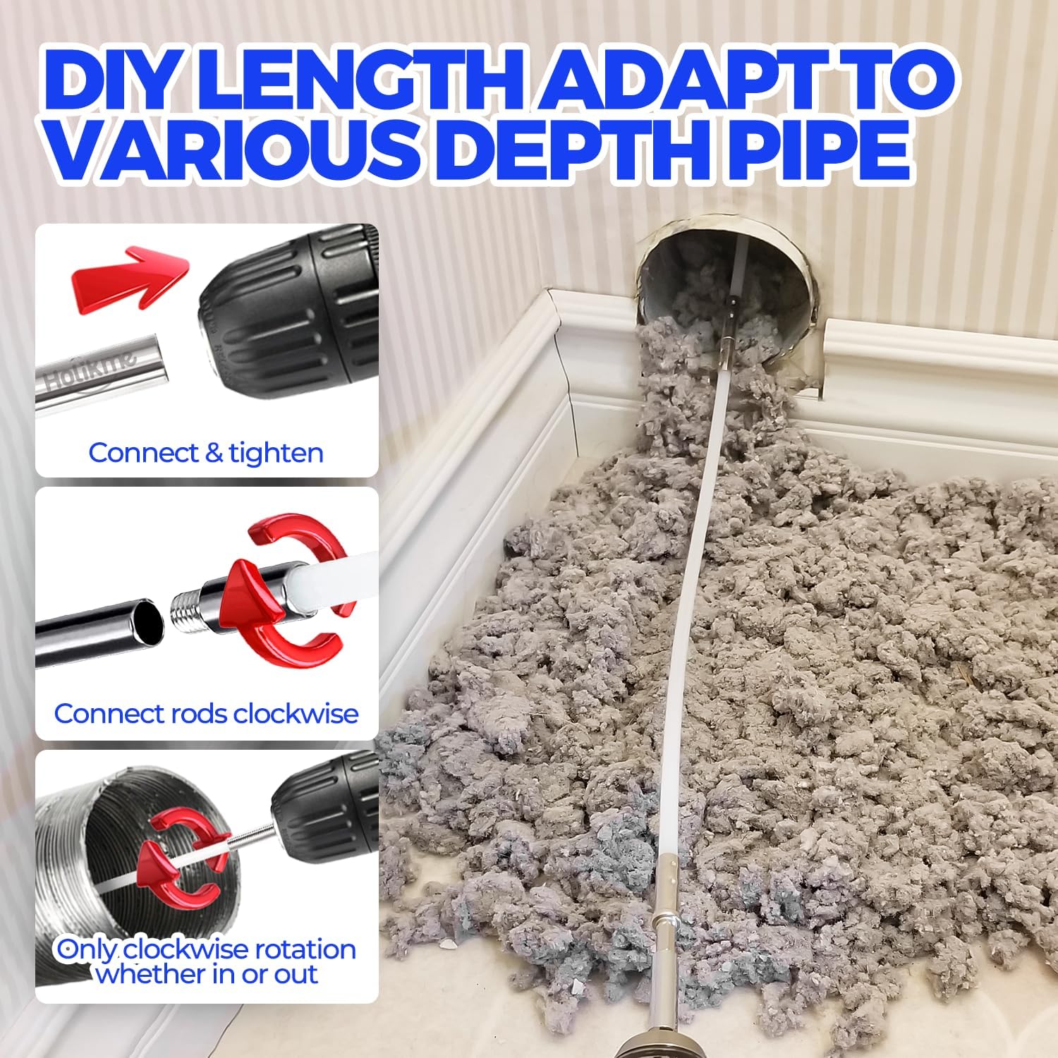 - Easy to Use & Effortless for Good Cleaning: dryer vent cleaner kit can be used with or without any kind of power drill and help you achieve professional results. Just always turn the rod clockwise and keep moving in&out slowly. Kindly remind that while cleaning around corners and turns or stubborn lint trap, slow down and then accelerate slowly.