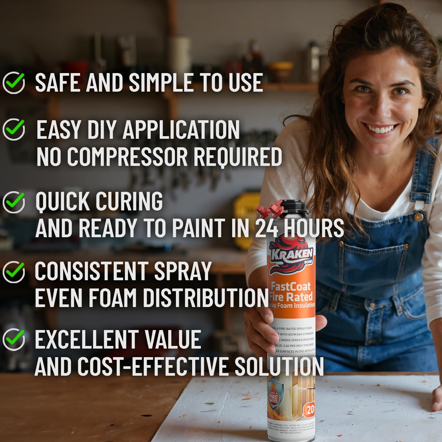 Kraken Bond Fastcoat Fire Rated Spray Foam Insulation Kit Closed Cell in a Can 20 sq ft (1x27.1 oz.) (R-Value 11.32 / 2in) - Spray Foam for Garage Door, Attic, Wall Gun & Cleaner Not Included, 1 Pack