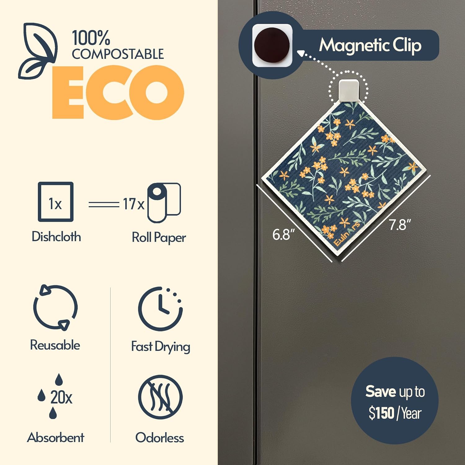 - Washable and Resuable: Tested to be reusable up to 200 times, our swedish dish rags for washing dishes can replace up to 17 rolls of paper towels. Affordable, durable, and easy to care for, they offer a long-lasting alternative to disposable paper towels