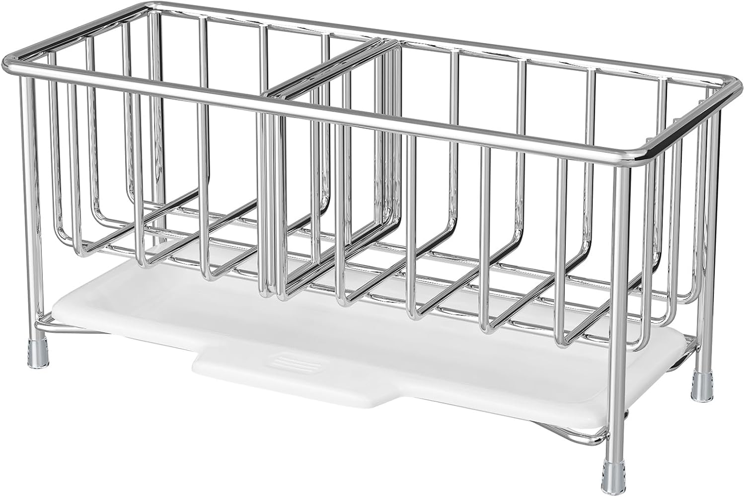 Kitchen Sink Sponge Holder, 304 Stainless Steel Soap Dispenser Caddy Organize, Kitchen Sink Brush Caddy Holder with Removable Drain Tray