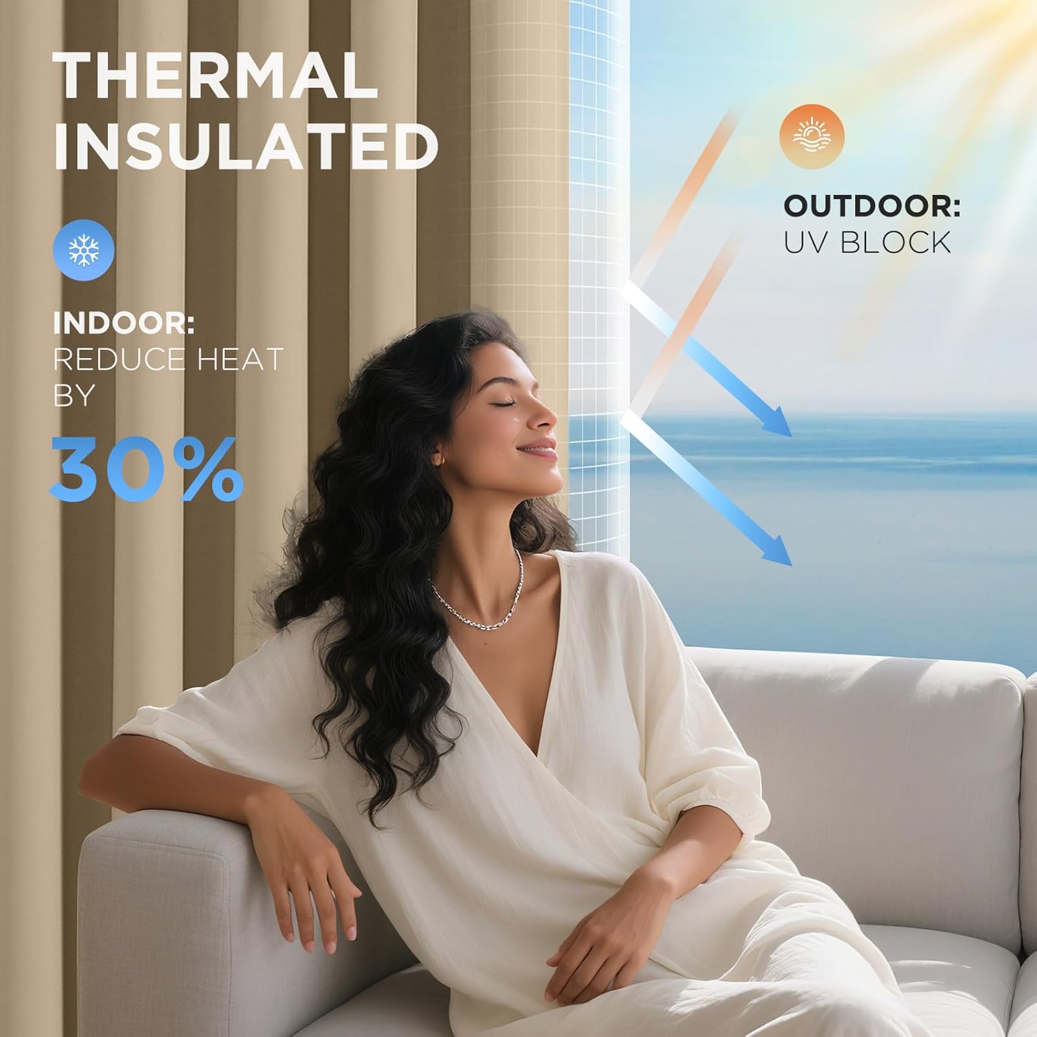 - 【Blackout Performance】Your go-to choice for adjusting indoor light! These curtains block over 75% of sunlight and outdoor glare, creating a cozier atmosphere in bedrooms, living rooms, and more. They also provide excellent privacy protection for your home. Pro Tip: Darker-colored curtains offer even better blackout effects.