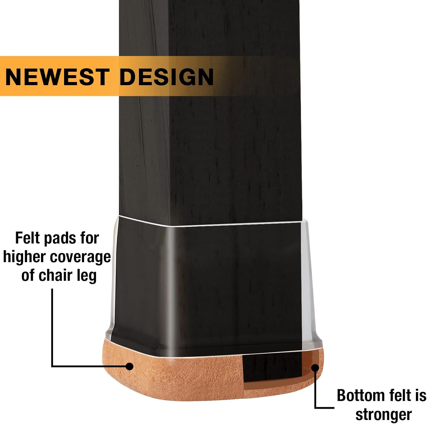 - 【Upgrade New Design】: 360° full felt pad bottom wrapped, which helps the felt bottom be able to touch the floor at any angle, preventing scratching the floor. Our chair leg floor protectors do not use gel. The bottom felt pad and the silicone chair leg floor protectors are integrated with a high-pressure machine to ensure that they will never fall off.