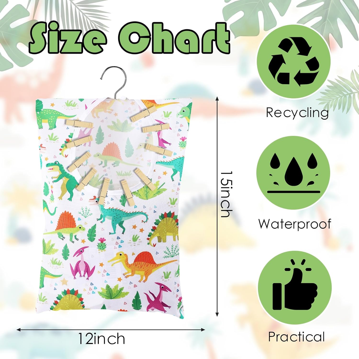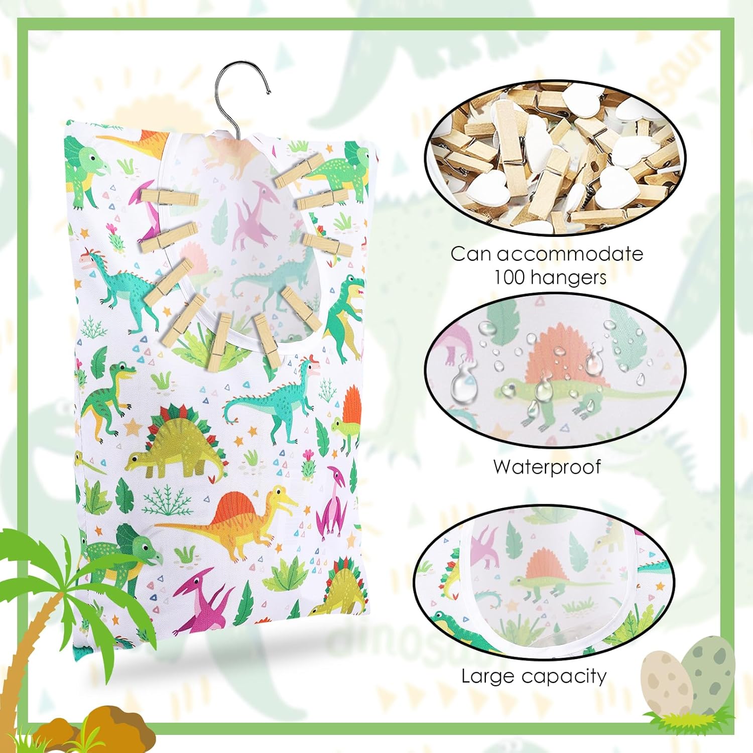 - Reliable Material: these clothes line bags are made of long-lasting canvas or water-repellent material in a cute dinosaur pattern, durable and easy to clean. And the clothespin basket equipped with a sturdy anti-rust steel hook, lets you easily hang it on clothesline or other place. They are sturdy and durable for your long-term use