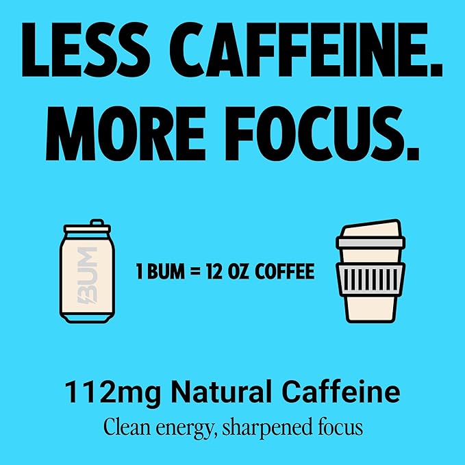 - Keep It Clean: Leave the drinks that contain a laundry list of ingredients in the past. Bum Energy contains just two simple ingredients, 112mg of Caffeine & 250mg of Cognizin. Made with zero sugar and no artificial colors. Just pure, untapped energy potential.