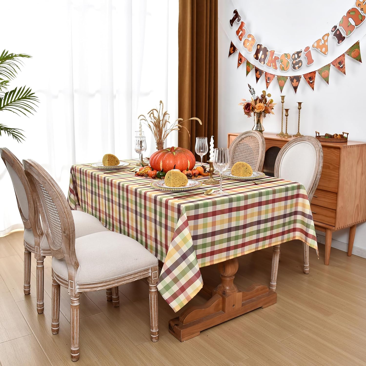 Waterproof Checkered Tablecloth Fabric - Rectangle 58x84 Inch Christmas Thanksgiving Day Table Cloth for Indoor/Outdoor Use - Harvest Table Cover for Kitchen,BBQs,Parties